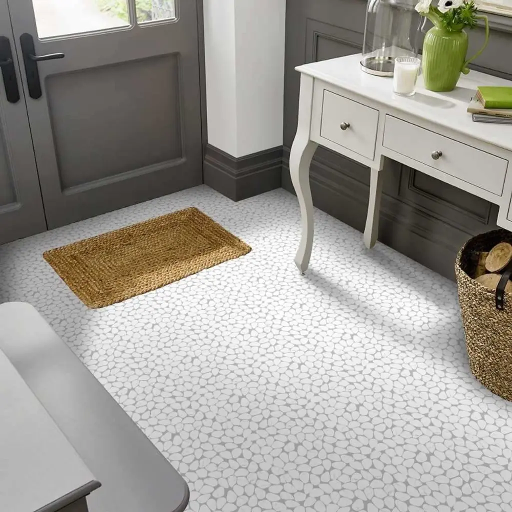 Recycled Cenote Pebble 13" X 13" Glass Floor And Backsplash Wall Tile - White - 1 Sheet (1 Sq. Ft.)