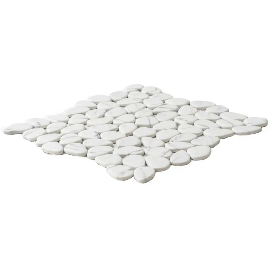 Inspired by The Tile Life Glass Collections, the Recycled Cenote Pebble installations bring you one step closer to the most modern glass kitchen, bathroom, and living room tile decorations. FEATURES: Glass tile for flooring and wall applications Glass pebbles and rocks mosaic tile Mesh backed Impervious and waterproof V3 Moderate variation PEI 2 Matte glass Easy to install 13" x 13" pebbles/ rocks glass tiles Ideal for backsplash, bathroom, shower, floor, wall Recycled Cenote Pebble is offered in Smoke, Blanco, Blend, Charcoal, Crema, Graphite, and Ocean DIMENSIONS: Mosaic sheet: 12.75-inch x 12.75-inch Overall product weight: 57.75 lb. Surface area per carton: 14 square feet