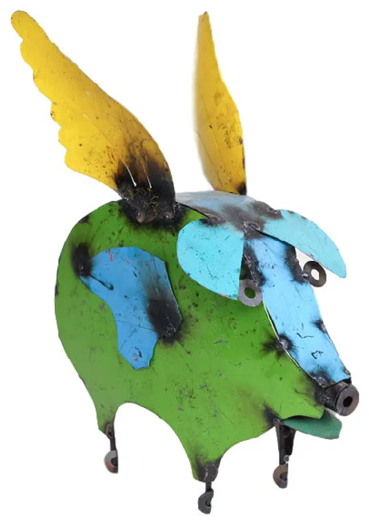 Recycled Metal Flying Pig, Multi-Colored, Small