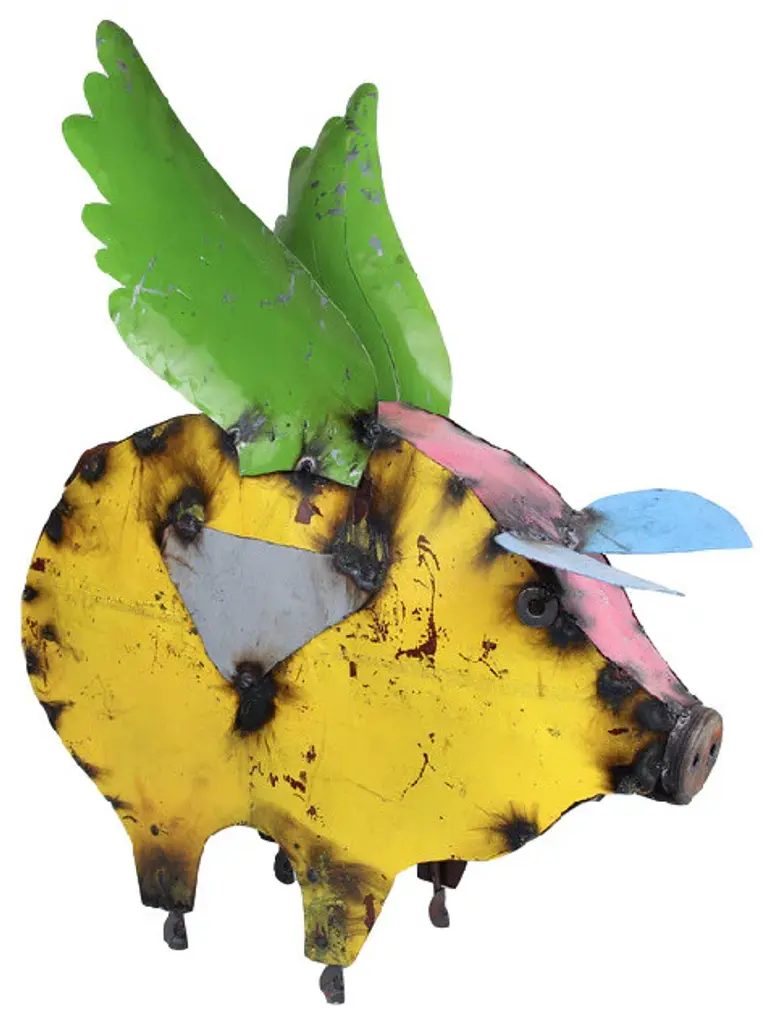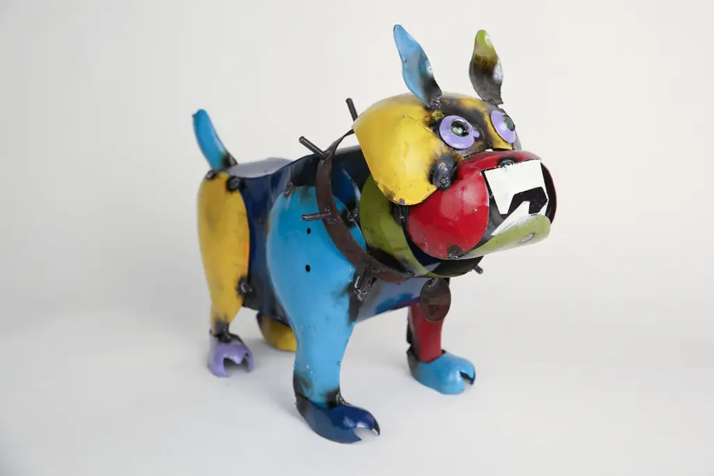 These metal animals are all handmade. Since this is a rustic piece out of recycled metal it will have dents and scratches. All pieces are one of a kind, no two will be alike. This piece is great for any room including the outdoors. If you wish to place it outside, a very thick coat of polyurethane sealer will keep it intact.PLEASE READ: The photo is just a representation. The colors will all vary. You cannot pick colors. You cannot get the color shown. They are all assorted, made by hand. Sizes will vary slightly, again because they are handmade.