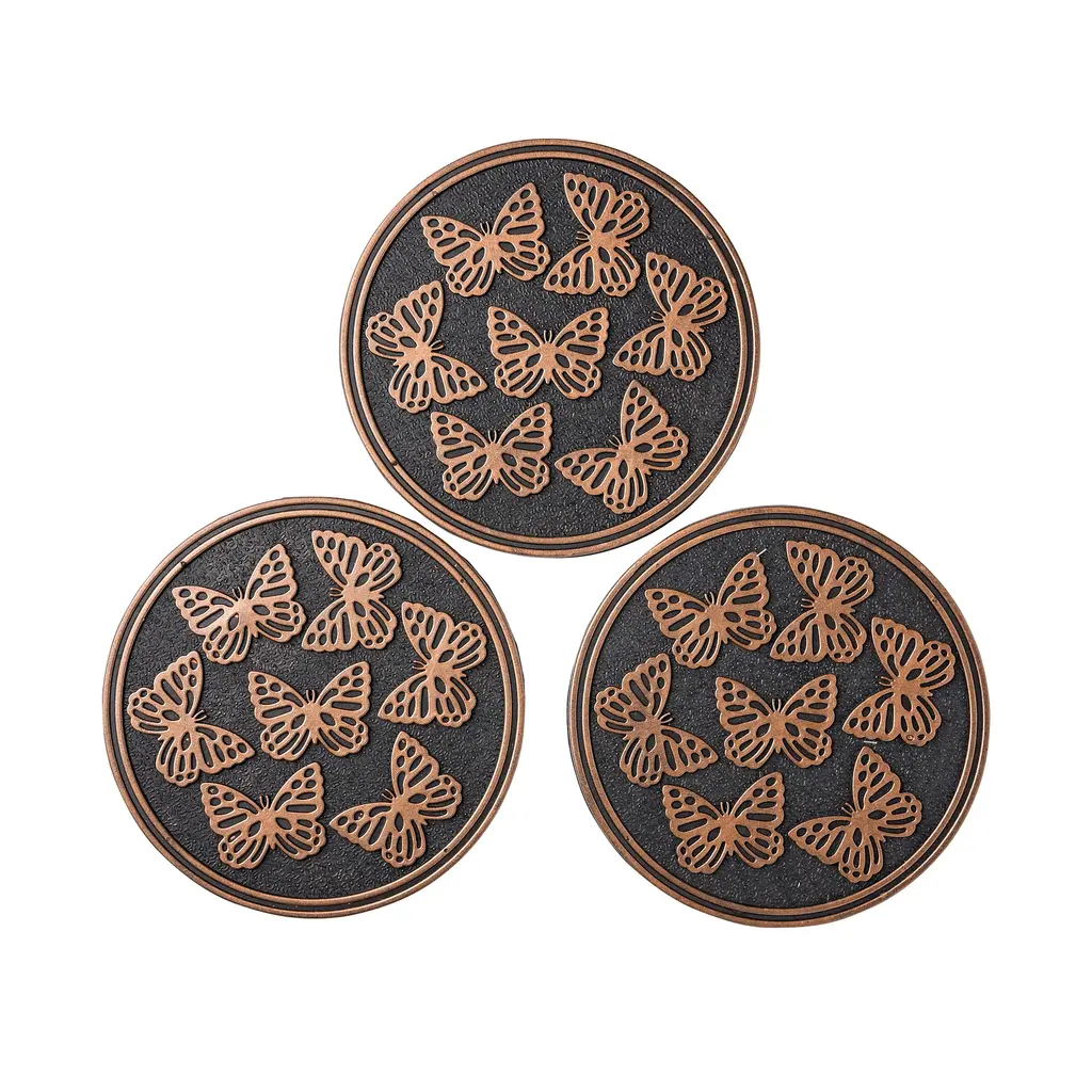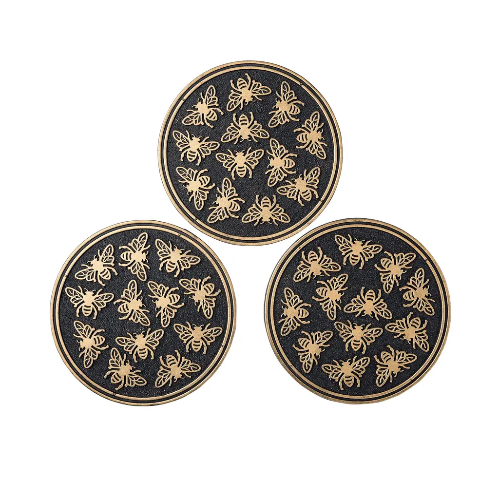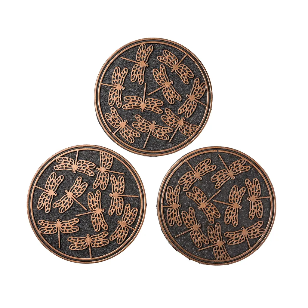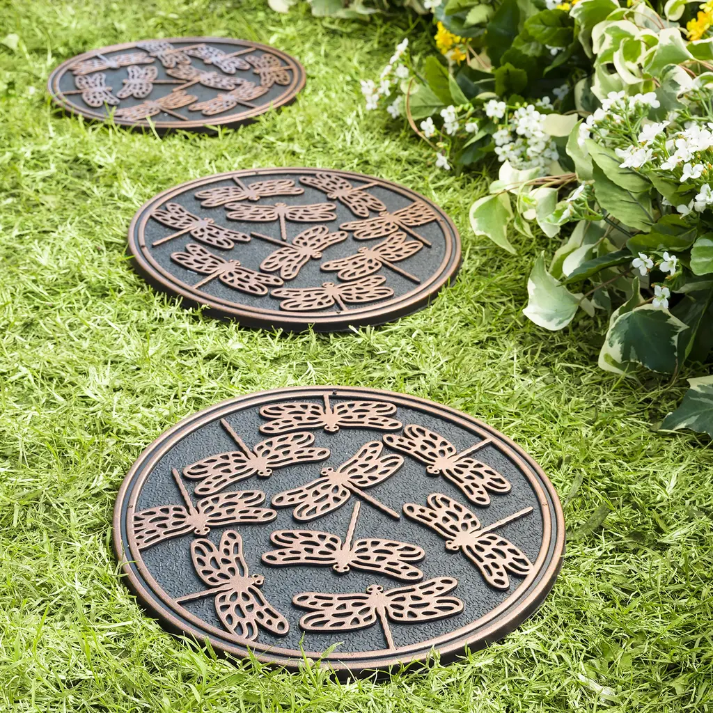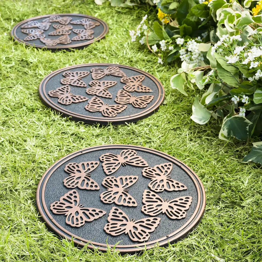 Place these charming Stepping Stones along a path for a well-marked garden walk.Made of partially recycled rubber, these markers will withstand extreme weather conditions in any season. Insects and trim are highlighted with a metallic finish that contrasts nicely with the black base. Sturdy, lightweight, easy to move.