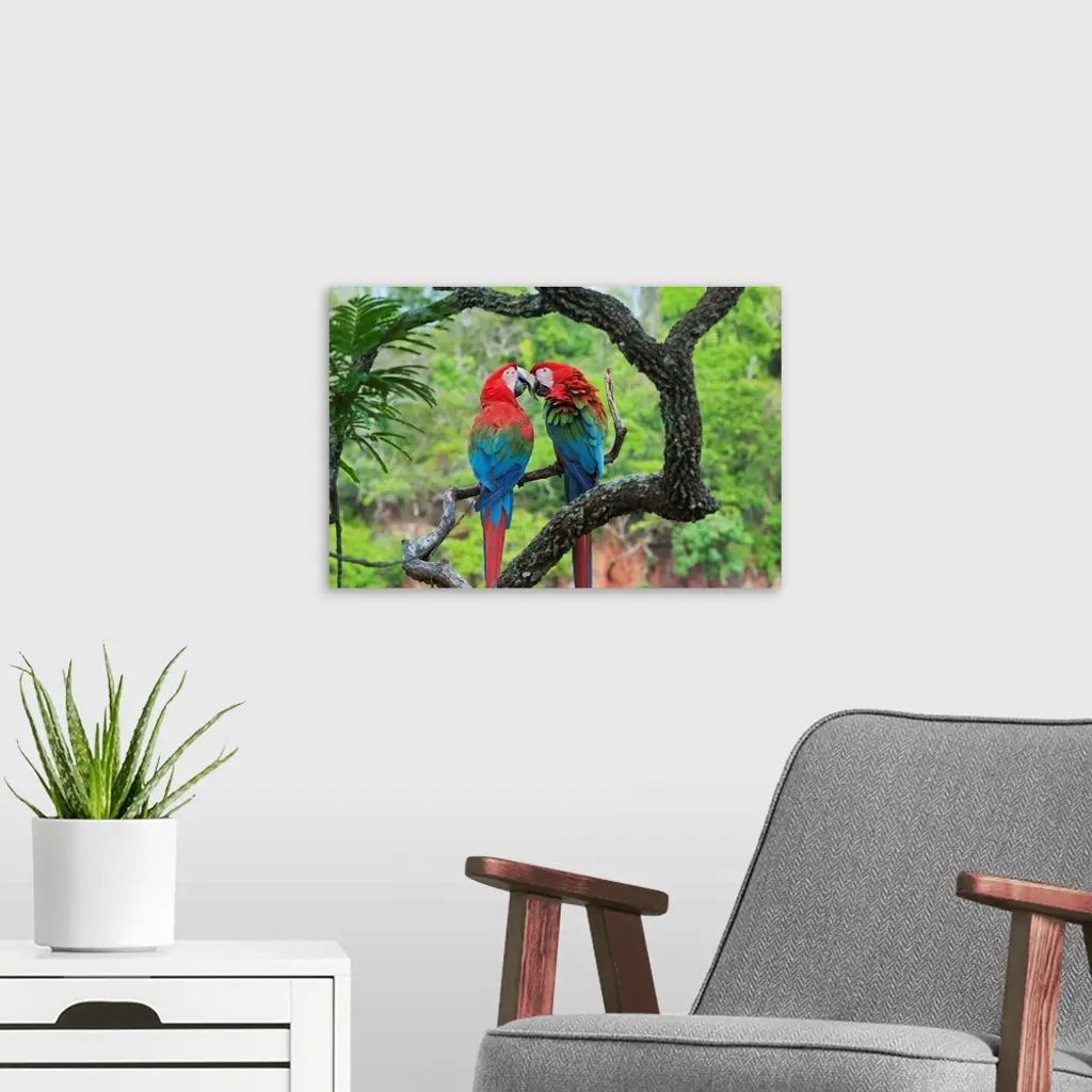 Red And Green Macaw Pair Courting, Buraco Das Araras, Pantanal, Brazil
