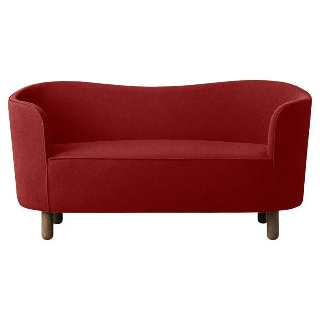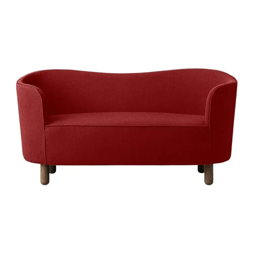 Red and smoked oak Raf Simons Vidar 3 mingle sofa by Lassen Dimensions: W 154 x D 68 x H 74 cm Materials: Textile, oak. The Mingle sofa was designed in 1935 by architect Flemming Lassen (1902-1984) and was presented at The Copenhagen Cabinetmakers’ Guild Competition in the same year. It was subsequently praised for its qualities as a small but elegant sofa in the professional journal “The Architect”. Flemming Lassen loved to travel, and he was often inspired by his journeys throughout Europe. He was very taken with both Italy and France, and had a burning desire to tour those countries on his motorcycle. Flemming Lassen wanted to create a sofa made for conversation with a comfort that invited people to stay seated and talk together for long periods of time. The armrests were designed to encircle the sitters, generating intimacy and transforming the sofa into a cosy place to relax. Flemming Lassen took inspiration from both French elegance and modern Italian style, and transferred the trends and his own ideas to a small, upholstered sofa called Mingle. By Lassen is a Danish design brand focused on iconic designs created by Mogens and Flemming Lassen, founded by Lassens’ relatives in 2008.