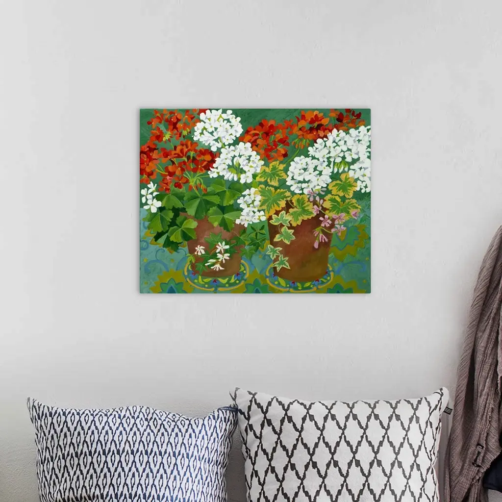 Red and white geraniums in pots, 2013 wall art for home and office decor. Discover canvas art prints, photos, mural, big canvas art and framed wall art in GreatBigCanvas.com's varied collections.