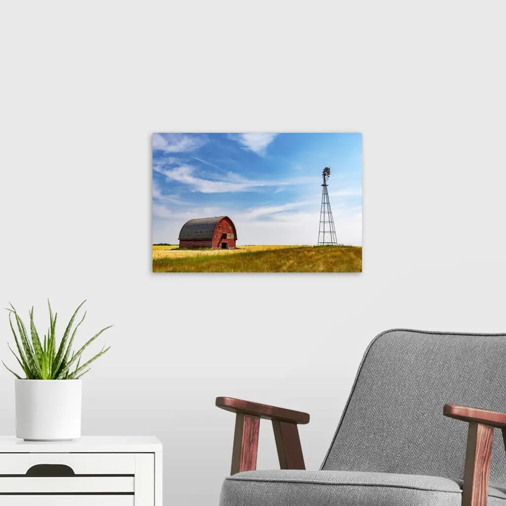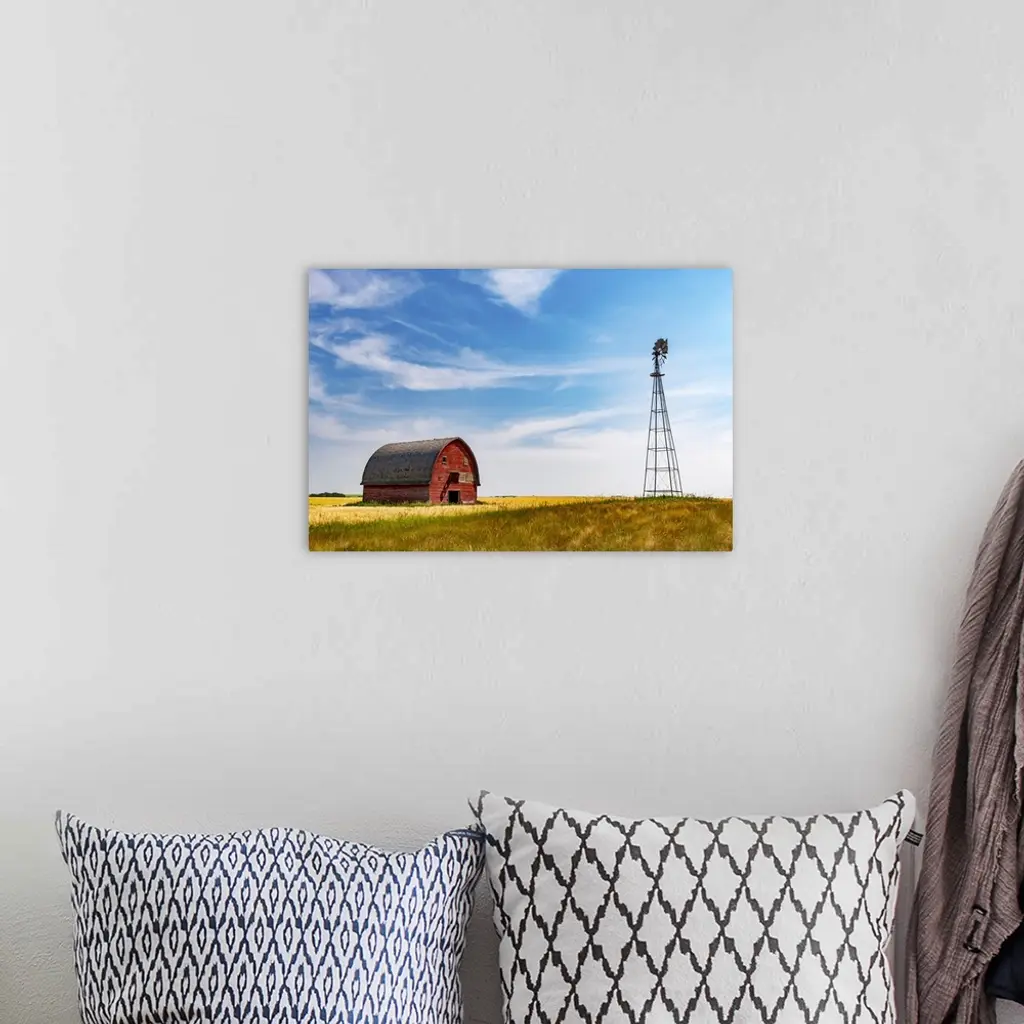 Red Barn And Windmill Vulcan, Alberta, Canada wall art for home and office decor. Discover canvas art prints, photos, mural, big canvas art and framed wall art in GreatBigCanvas.com's varied collections.