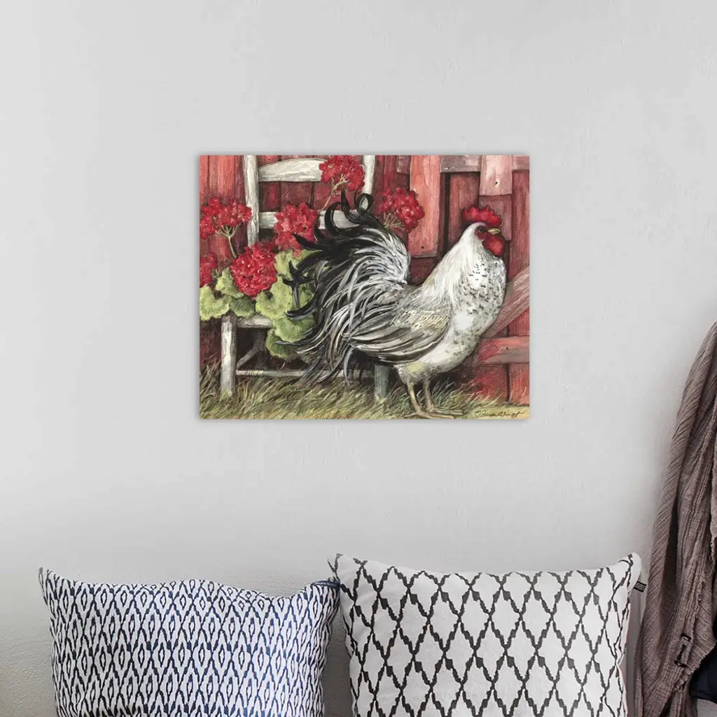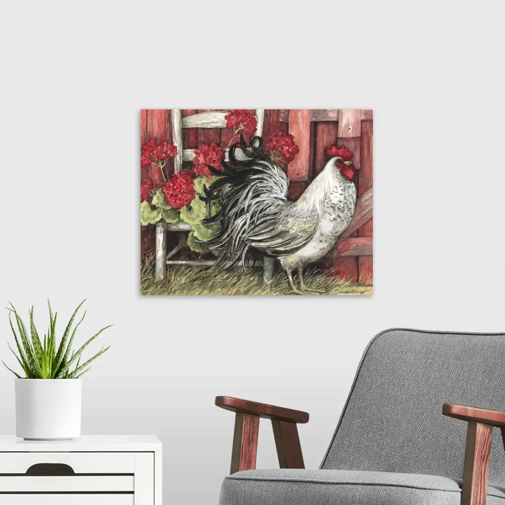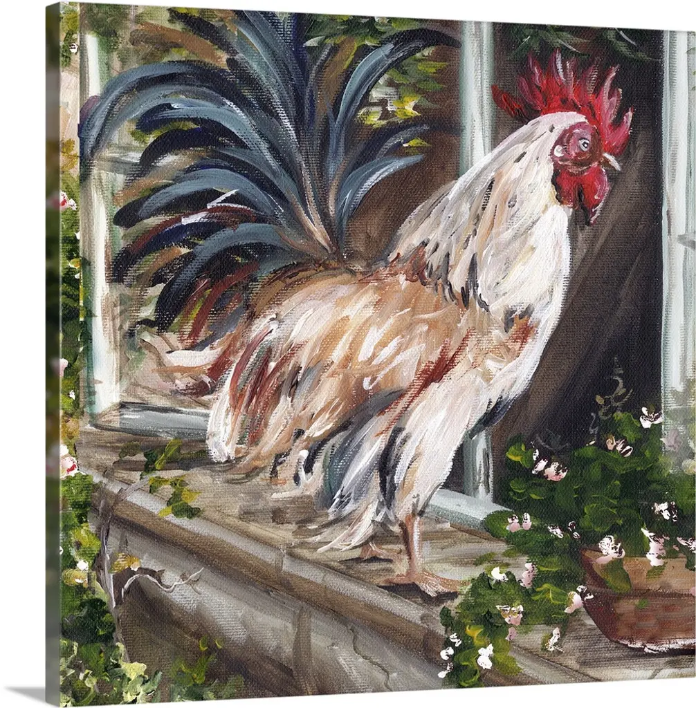 Sophisticated country rooster adds warmth to dining room, kitchen and more.