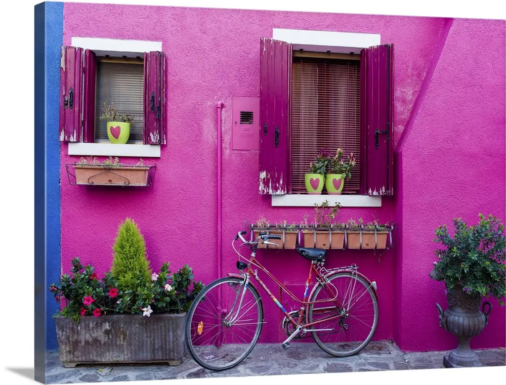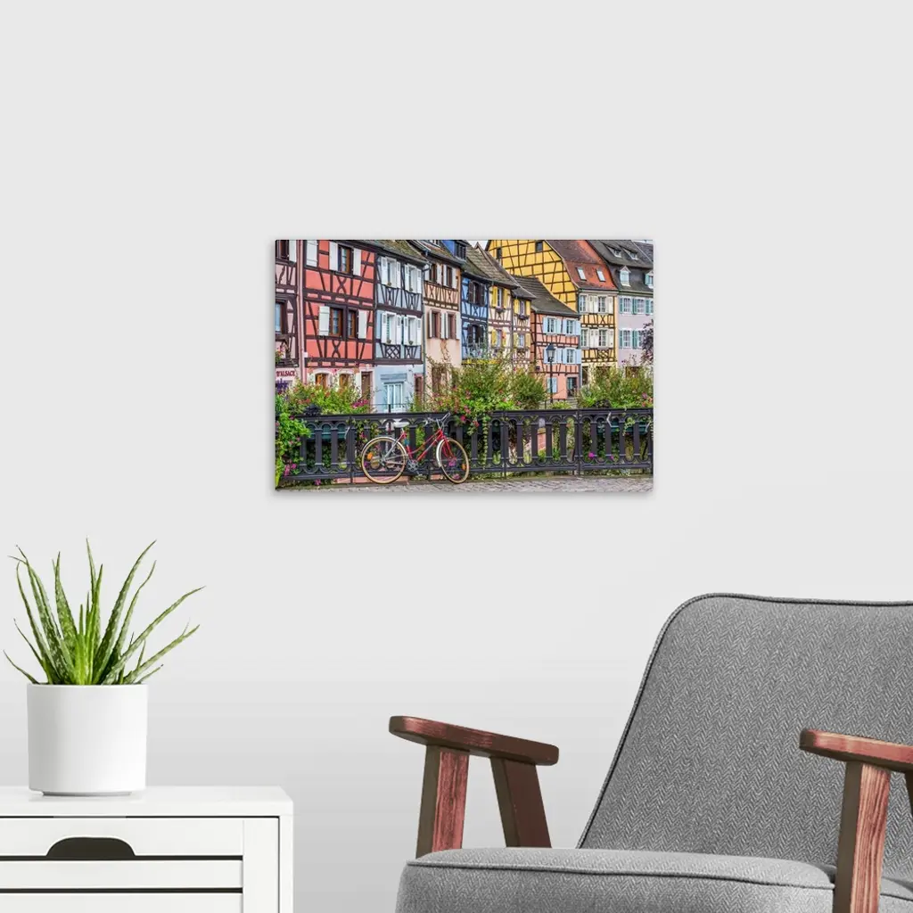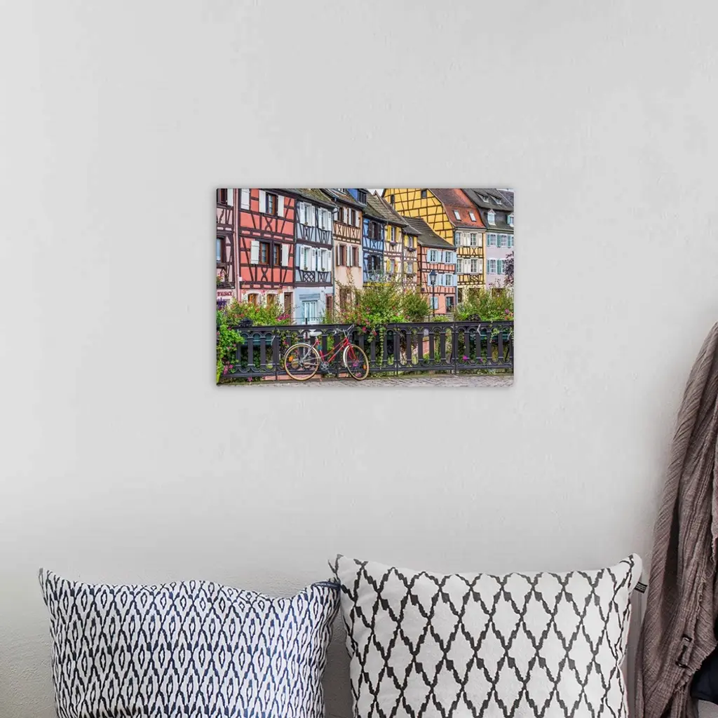 Red Bike And Timbered Buildings, Colmer, Alsace, France