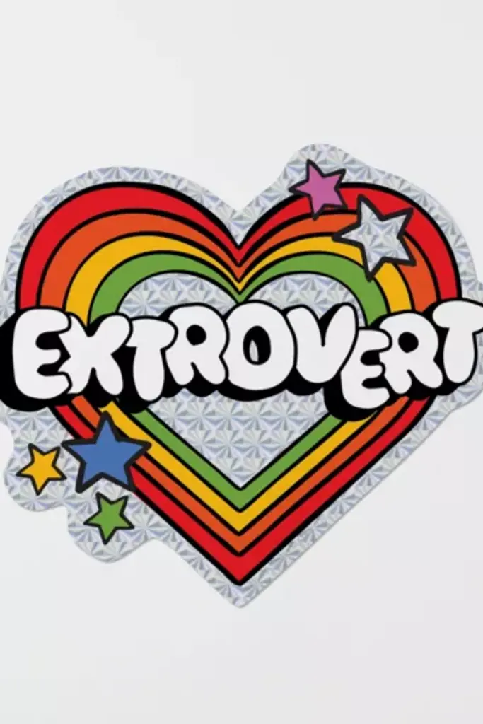 **Please note all sales are final** Extrovert sticker. **Content + Care** \- Glossy Prismatic Sticker Material. \- made in Sweden **Size + Fit** \- 2.8529" x 2.5041"