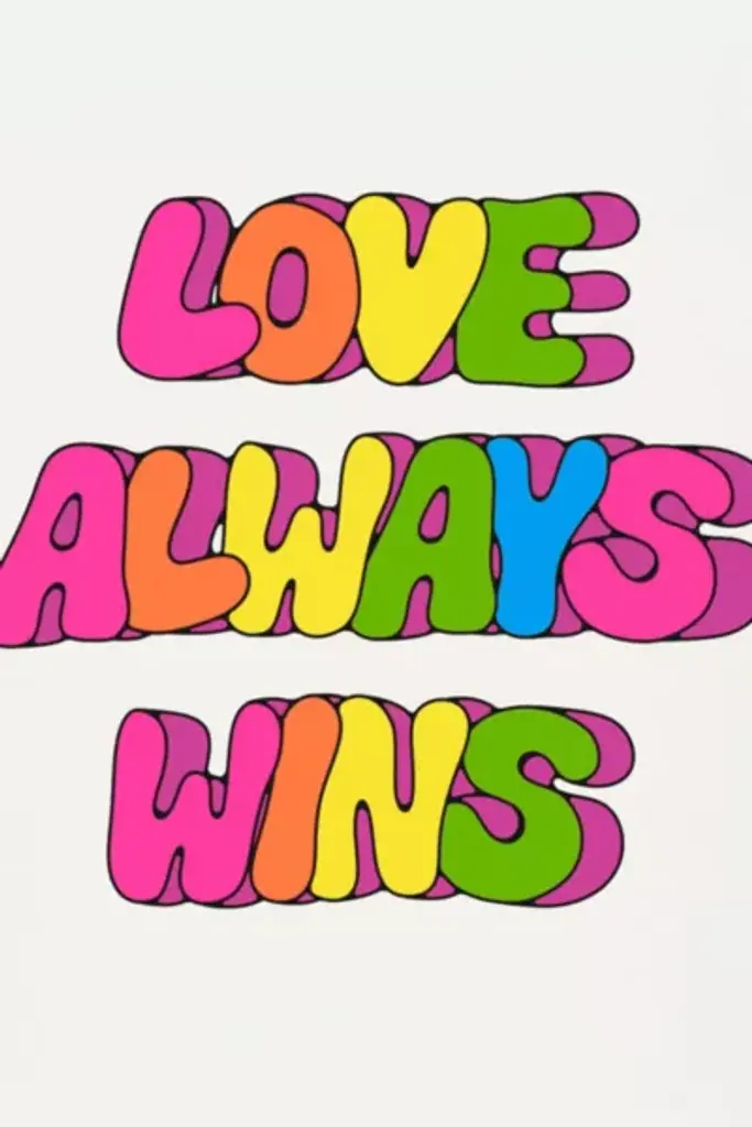 Love Always Wins card. Exterior Greeting: "LOVE ALWAYS WINS" Interior Greeting: blank **Content + Care** \- Made with heavyweight cardstock, soy based inks, 30% post-consumer recycled paper. FSC & SFI certified. \- made in the USA **Size + Fit** \- 4.25" x 5.5"