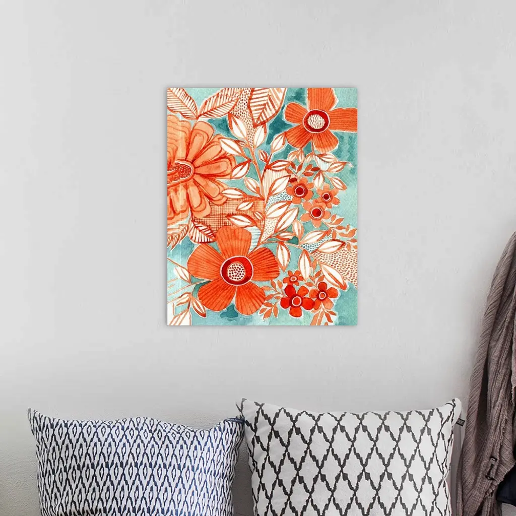 Red Daisies With Aqua wall art for home and office decor. Discover canvas art prints, photos, mural, big canvas art and framed wall art in GreatBigCanvas.com's varied collections.