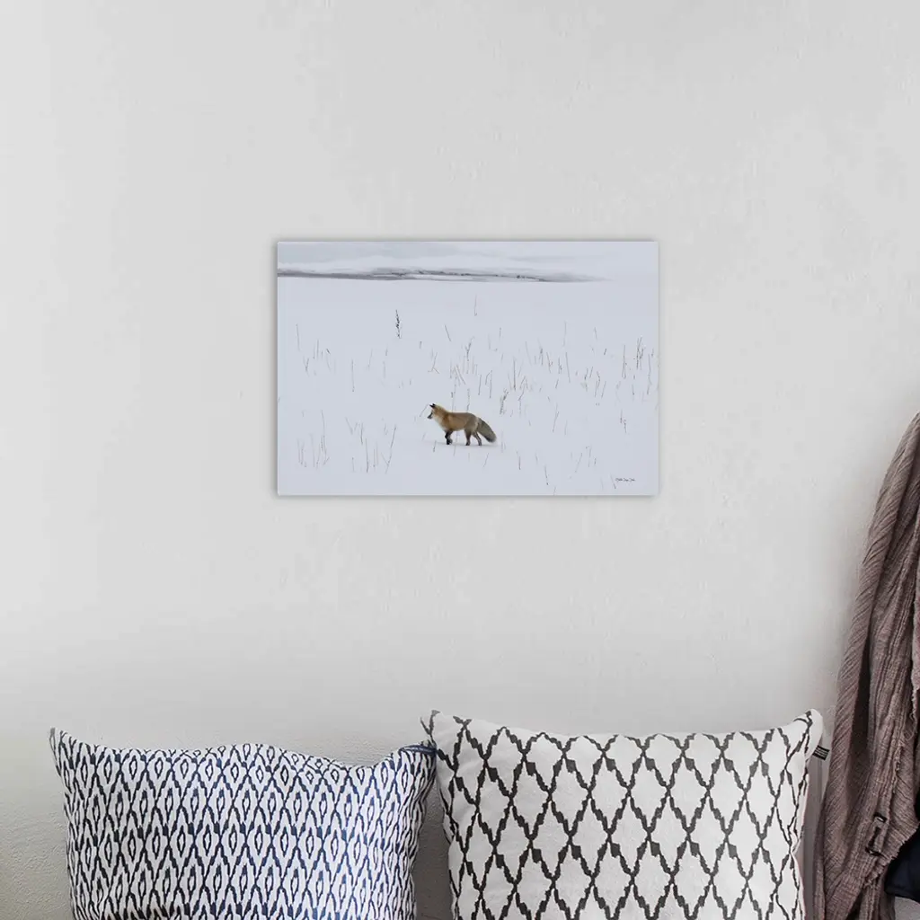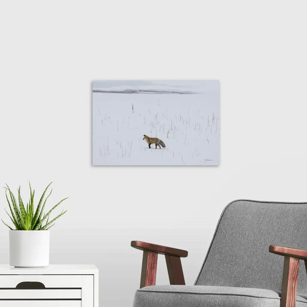 A red fox prowls for voles, hidden beneath the snow, in Yellowstone National Park in the western U.S. state of Wyoming.