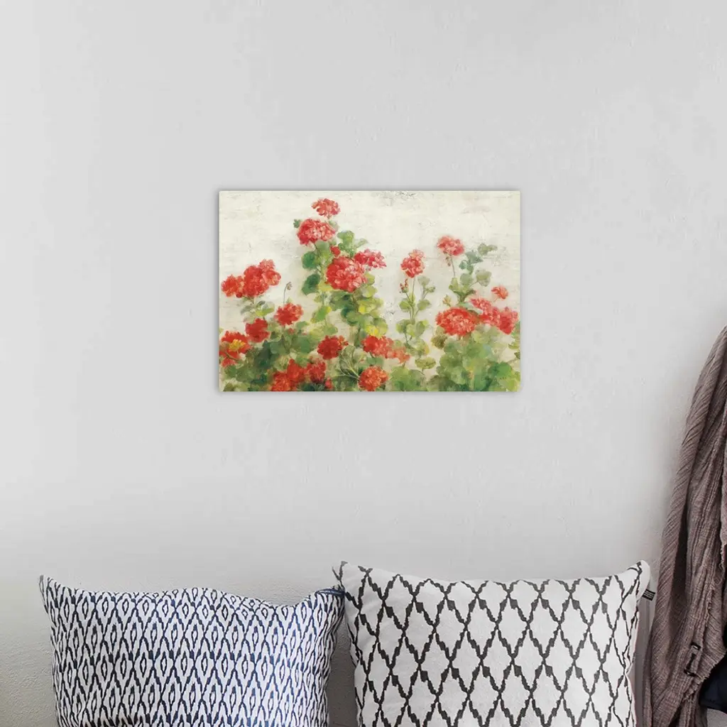 Red Geraniums on White v2 wall art for home and office decor. Discover canvas art prints, photos, mural, big canvas art and framed wall art in GreatBigCanvas.com's varied collections.