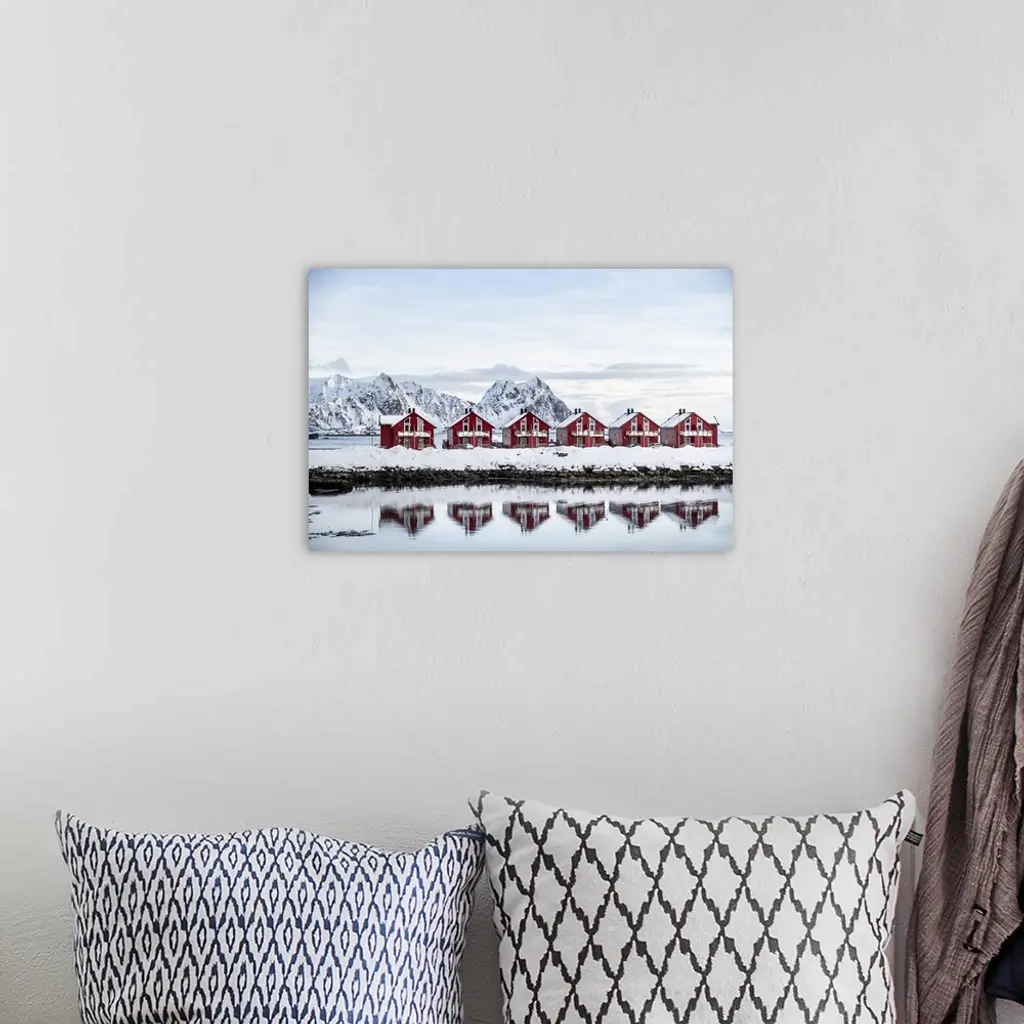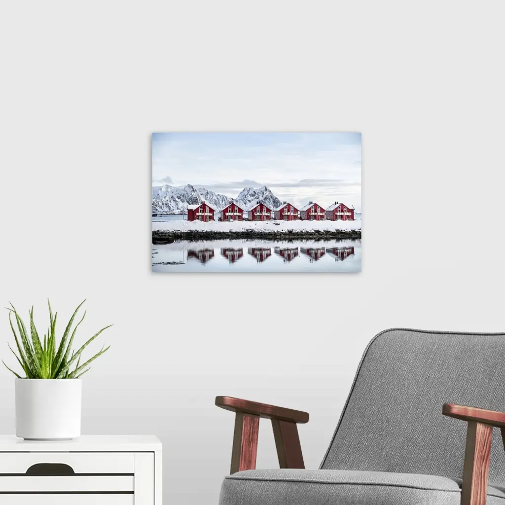 Red houses in Svolvaer, Lofoten Islands, Nordland, Norway