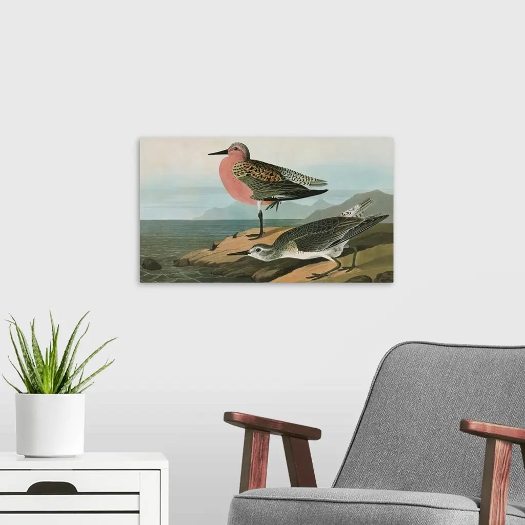 Red Knot, or Red-breasted Sandpiper (Calidris canutus). Engraving after John James Audubon for his 'Birds of America,' 1827-38.