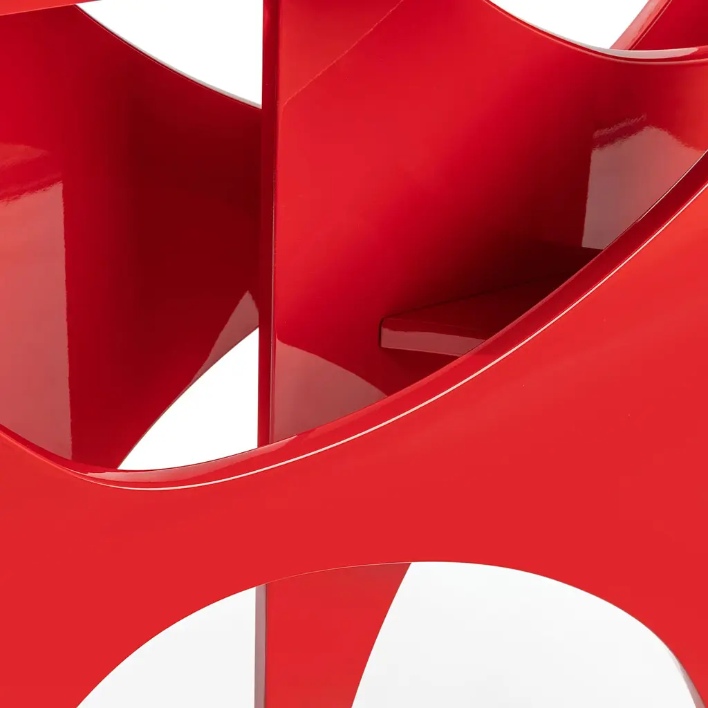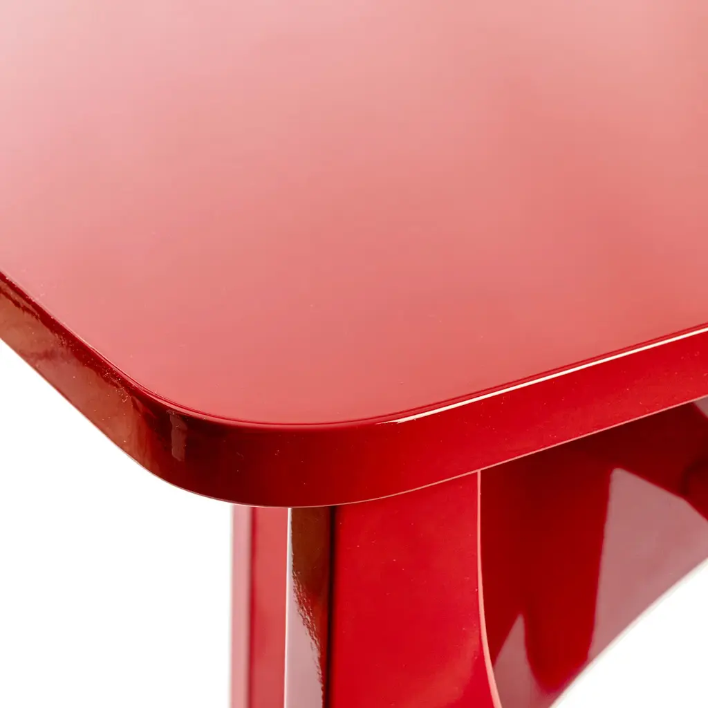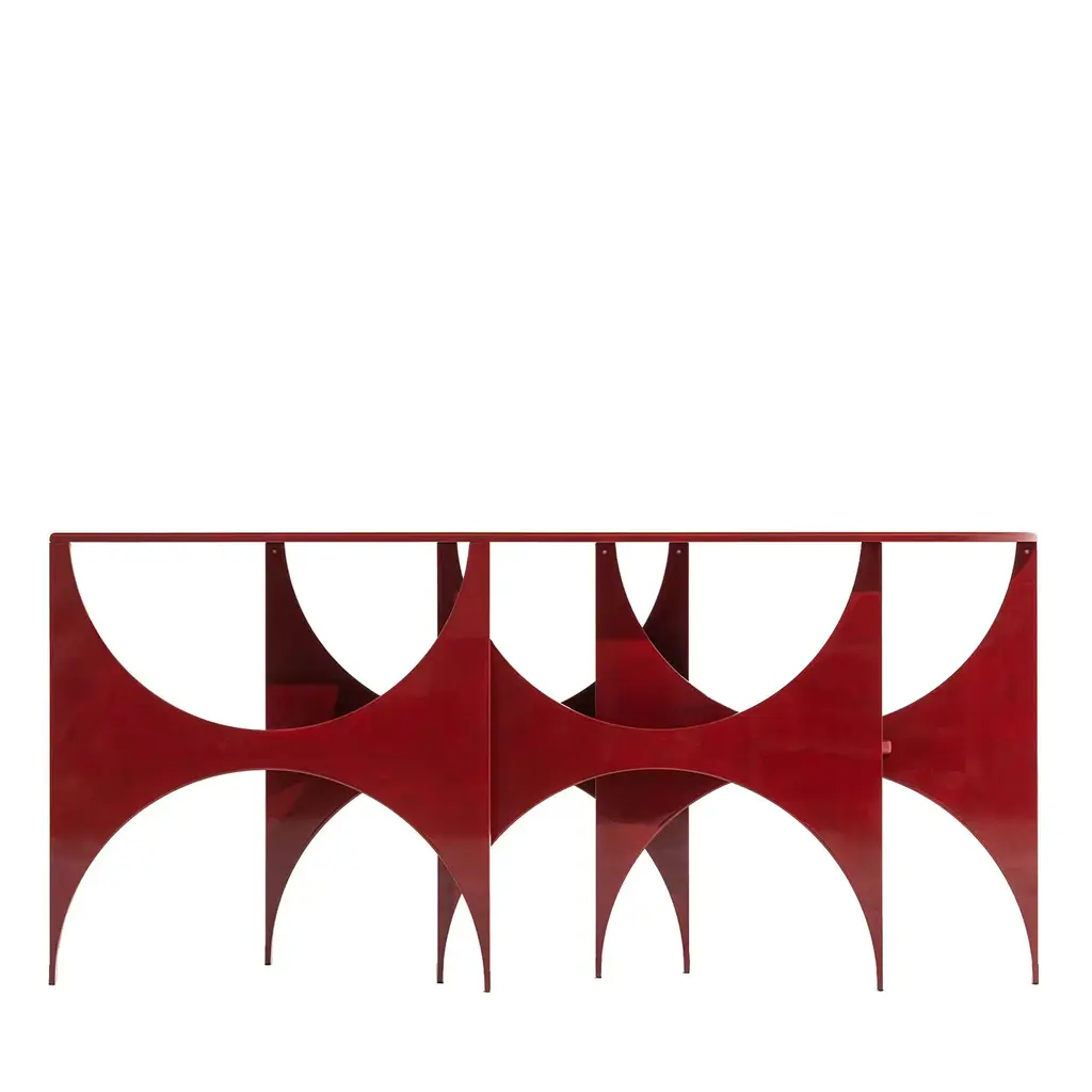 An homage to spatialist artist Paolo Scheggi - whose paintings or wainscotings consist of three overlapping layers of canvases or wood as if they were theatrical settings - this MDF is a statement-making piece sure not to go unnoticed. Defined by cut-out forms shaped by hand by master craftsmen, the spectacular legs share with the top the same water-resistant polished red-lacquered finish of glamorous impact. Please contact the Concierge for available variants.