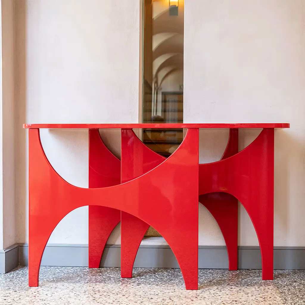 Red-Lacquered Mdf Console Tribute To Paolo Scheggi