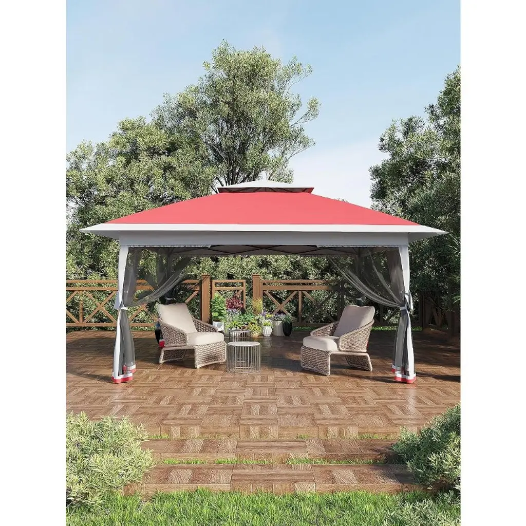 Red + Light Gray 13x13ft Outdoor Gazebo With Mosquito Net, Perfect For Parties, Weddings, Dining & Backyard Events