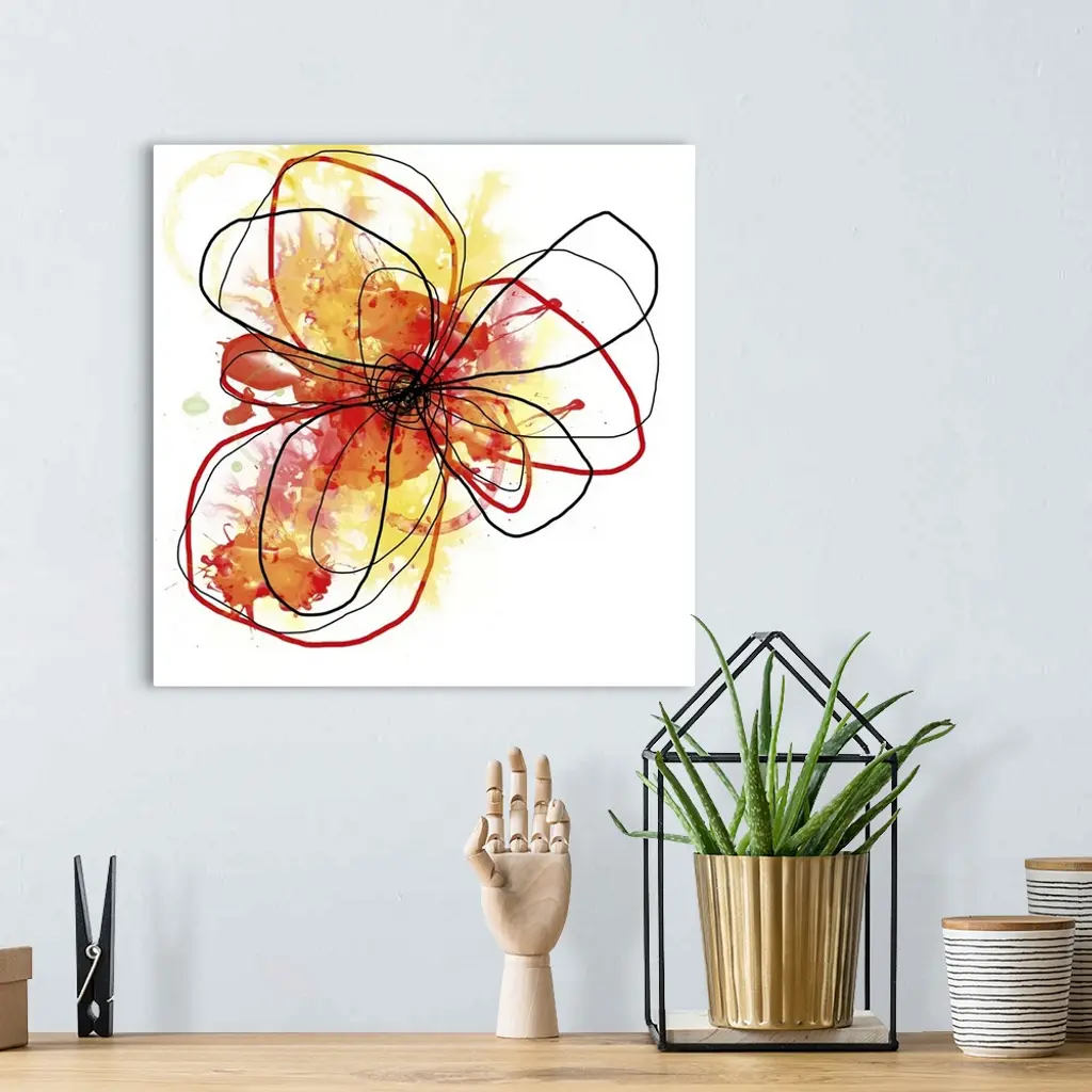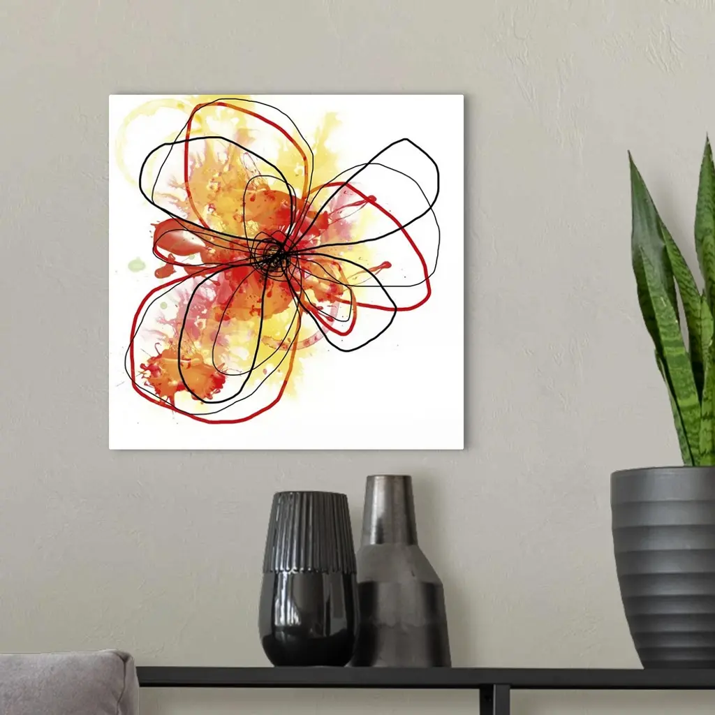 This is the third image in a series of four created by layering watercolor textures with digital line work to create a simple blossom shape.