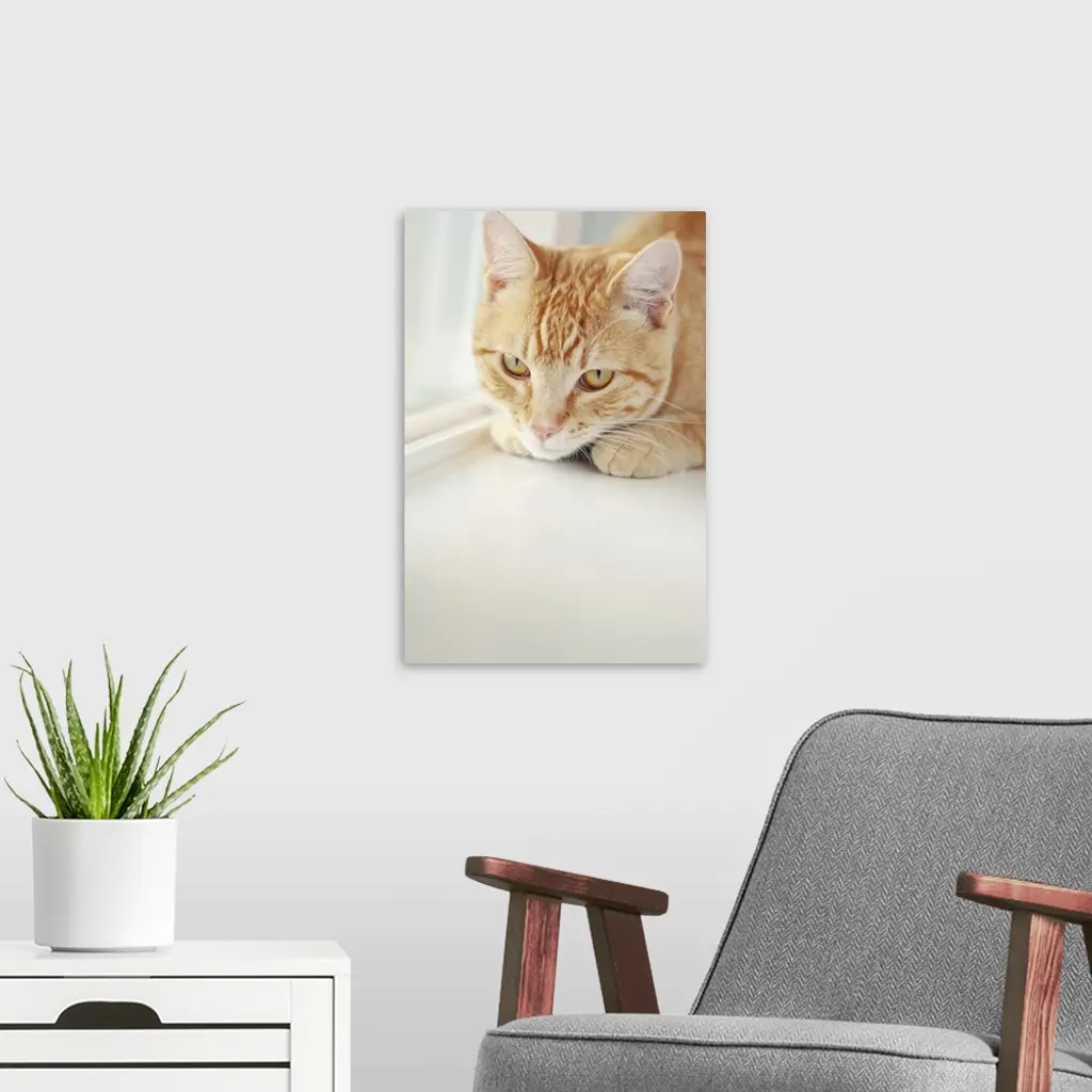 Red orange cat on white window sill. wall art for home and office decor. Discover canvas art prints, photos, mural, big canvas art and framed wall art in GreatBigCanvas.com's varied collections.