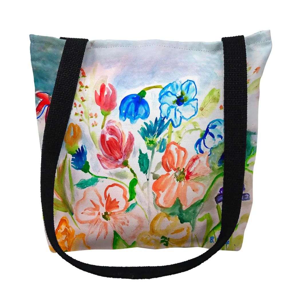 This versatile t-bottom tote bag is a great way to show your style with edge-to-edge sublimation printing in vibrant full color. The black cotton straps are soft to the touch and the exterior is water-resistant. All of our products are based on designs by artists R.B. Hamilton and Betsy Drake and are printed in the USA from imported materials. We offer three sizes: Small totes are 13x13, Medium totes are 16x16, and Large totes are 18x18.