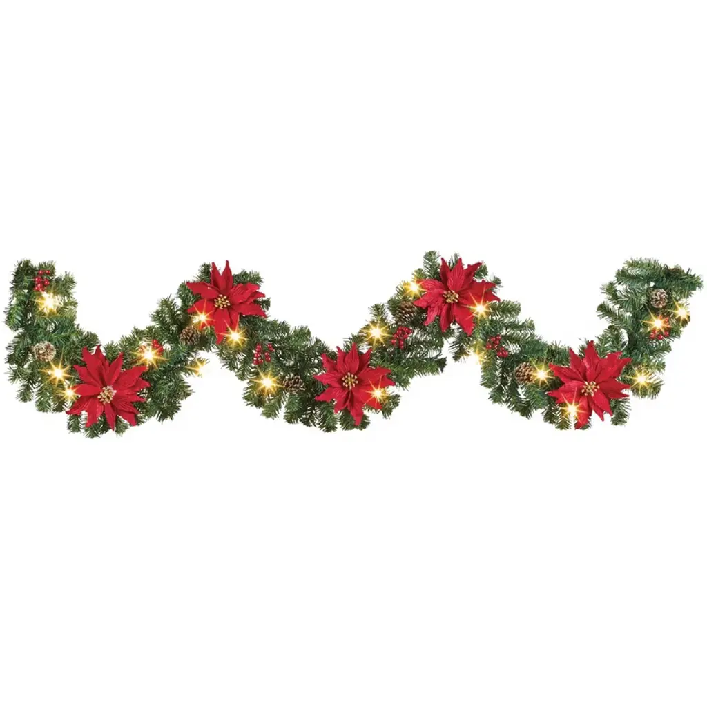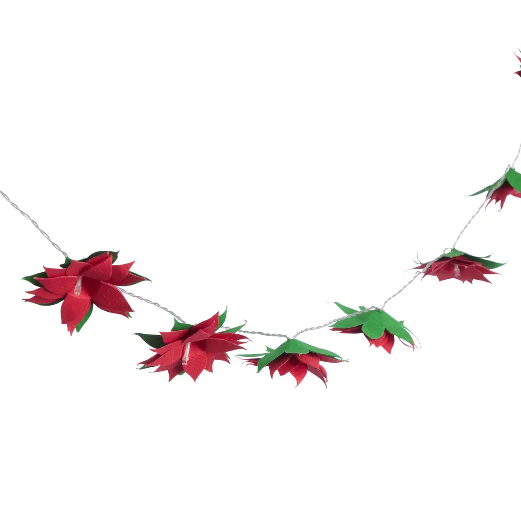 Handcrafted by passionate paper artisans in India, our battery-operated LED string lights are adorned with 10 red poinsettia flowers. With an expertly layered, delicate texture, these classic Christmas botanicals add a whimsical glow to your holiday home and set an ambient scene for special occasions this yuletide season. A high-end take on boho arts and crafts, these global and giftable string lights offer handmade quality at a value.