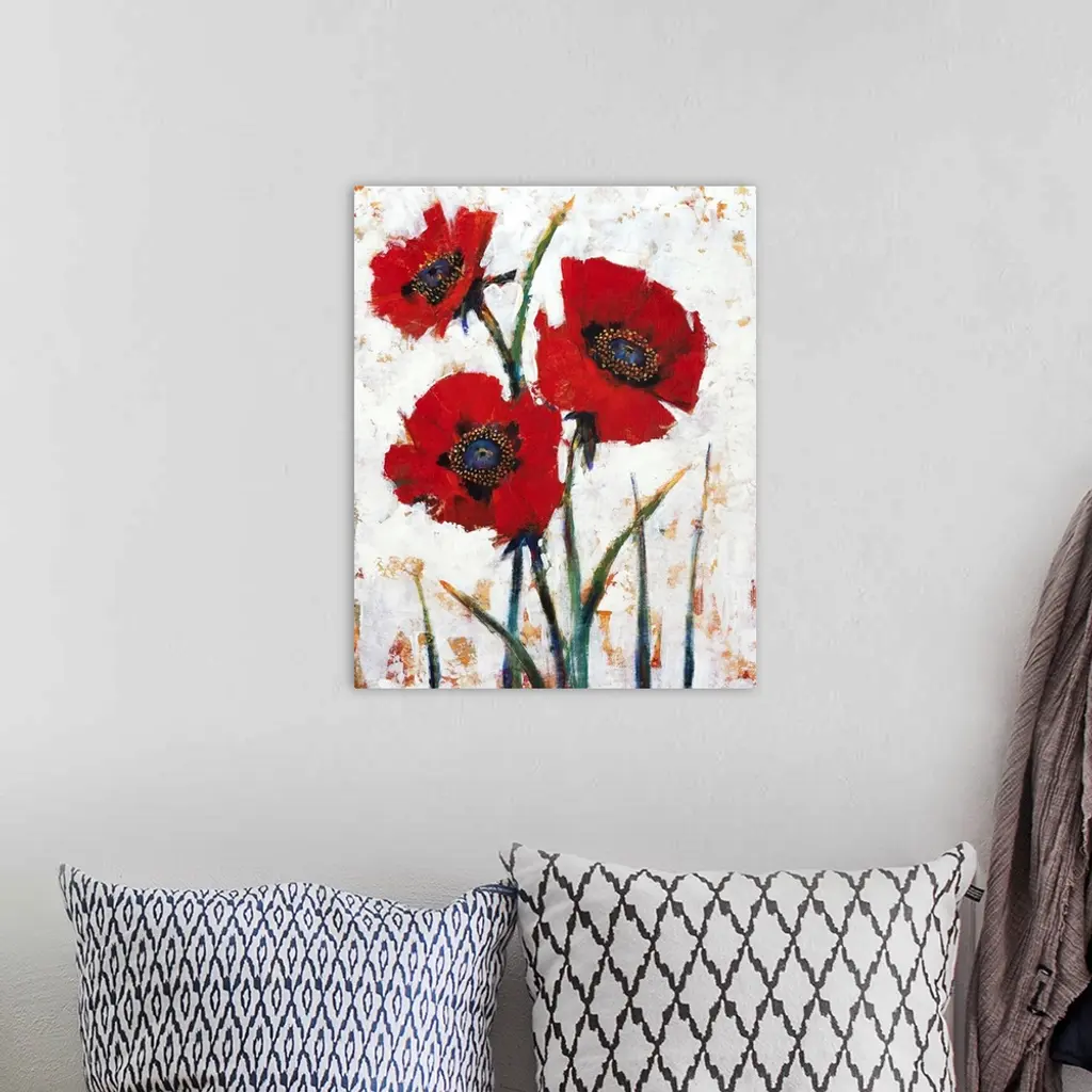 Red Poppy Fresco I wall art for home and office decor. Discover canvas art prints, photos, mural, big canvas art and framed wall art in GreatBigCanvas.com's varied collections.
