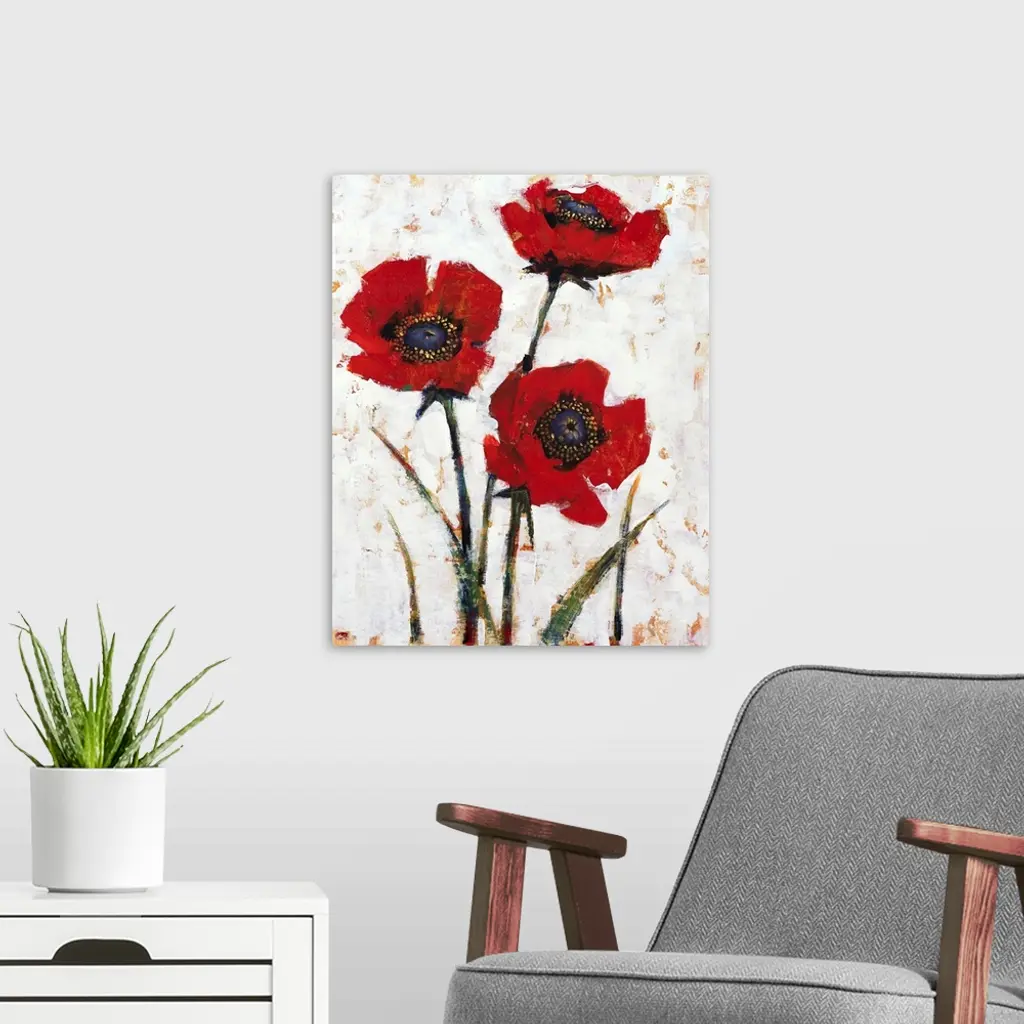 Red Poppy Fresco II wall art for home and office decor. Discover canvas art prints, photos, mural, big canvas art and framed wall art in GreatBigCanvas.com's varied collections.