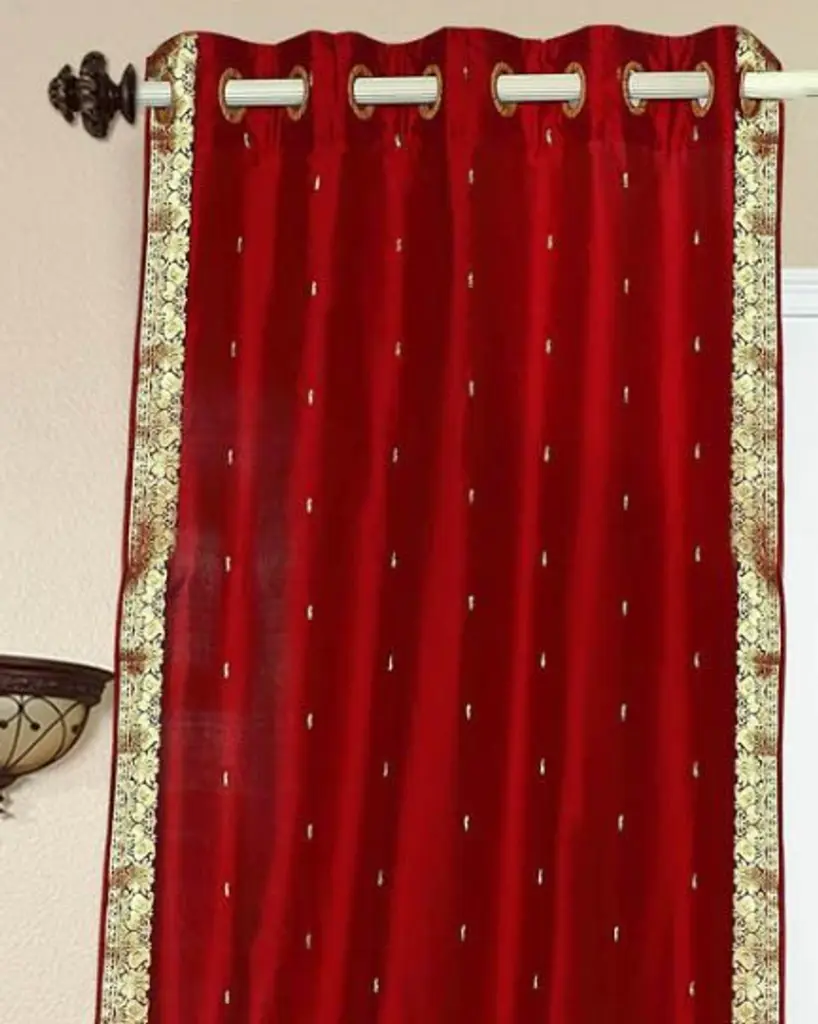 Red Ring Top Sheer Sari Curtain / Drape / Panel - Piece