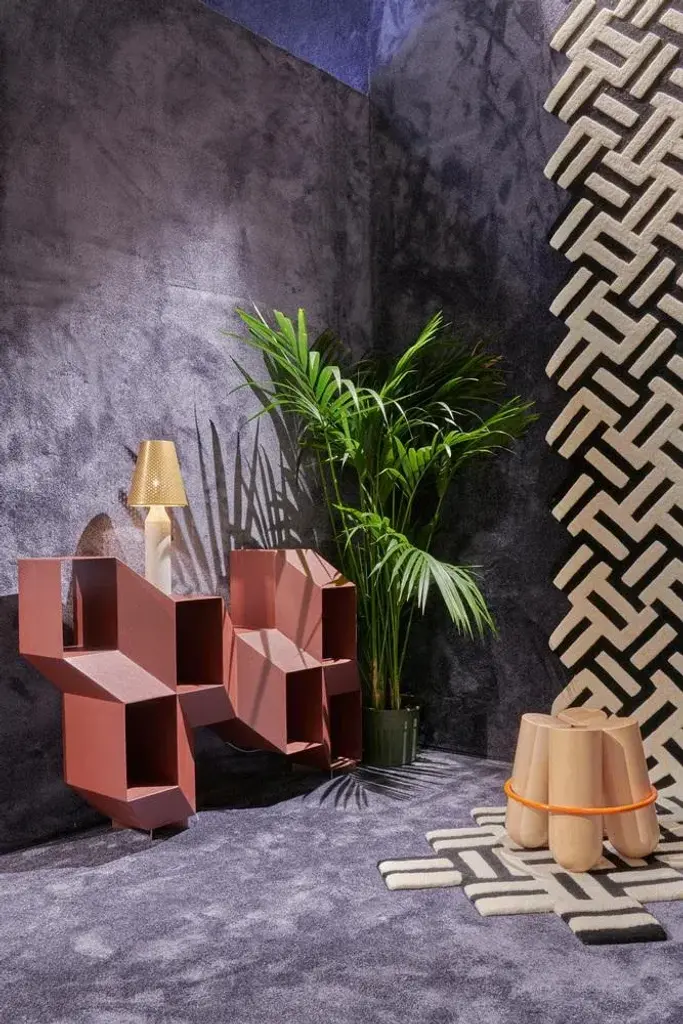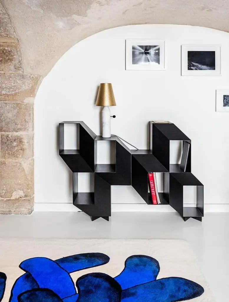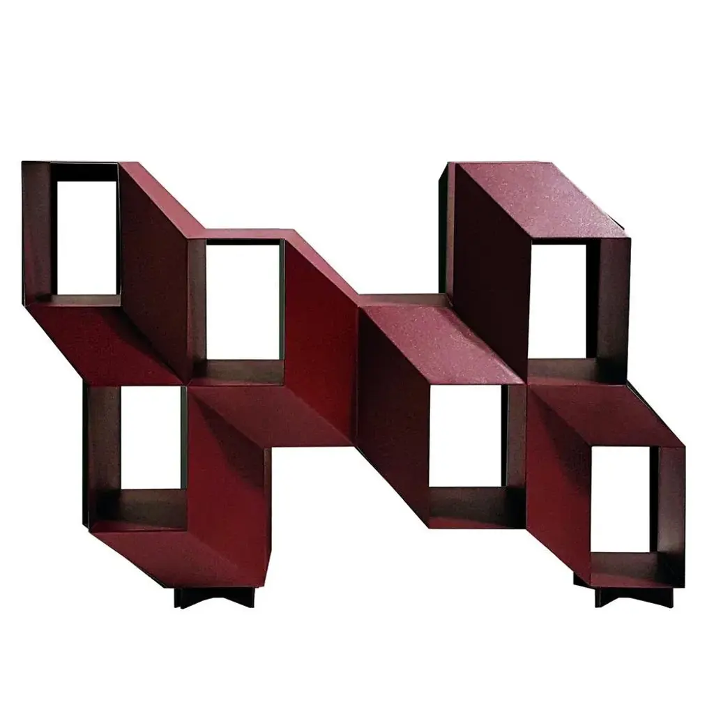 Red sculptural "rocky" credenza - charles kalpakian dimensions: w 140 x d 36 x h 95 cm materials: steel different colors are available rocky is a sculptural piece. It can be used as a console or a credenza, but will also accommodate books and objects to become the most graphic display or bookshelf. Designer charles kalpakian plays with our perception of space and volume with an object that reveals itself and changes according to the observer’s point of view. this piece is attributed to the mentioned designer/maker. It has no attribution mark and no official proof of authenticity, however it is well documented in design history. I take full responsibility for any authenticity issues arising from misattribution