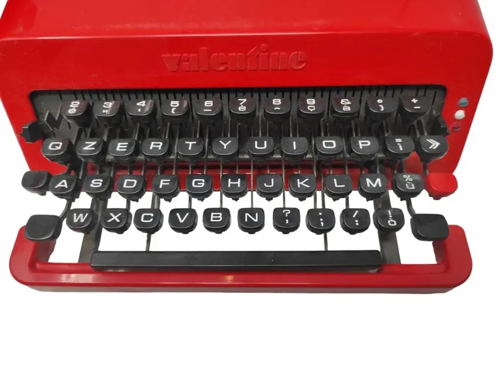 Writing machine that, considering over 40 years of age, remains a beautiful, current object, excellent for use, for window furniture or inside a professional studio. Writing machine is also ready for a gift of taste, original and, certainly extremely welcome for people of taste lovers of Italian design. Writing machine conceived by Sottsass and exposed to M.om.a. from New York. Protective custody has scratches due to use and time. The car turns out to be in excellent condition with all its working part. This piece has an attribution mark, I am sure that it is completely authentic and take full responsibility for any authenticity issues arising from misattribution