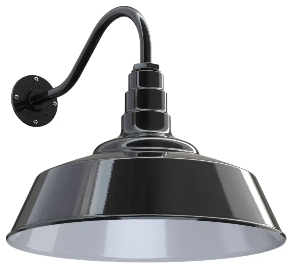 When you"™re crafting a space to bring your story to light, this large barn light fixture can stand out on its own, or confidently pull everything together in style. As with every light we craft, The Redondo is handmade from heavy duty steel, then powder coated for the high quality, long lasting finish we all know and love. Creating a space full of quality and character is easy with help from The Redondo, which does best when used outdoors, and looks great on large exterior walls (like on a garage or oversized building), on barn sides, or perched high among the roof peaks and tall eves of your estate. Want to install it indoors? Be our very bold guest! Our lights are all approved for indoor and outdoor use, no matter how big or how small.