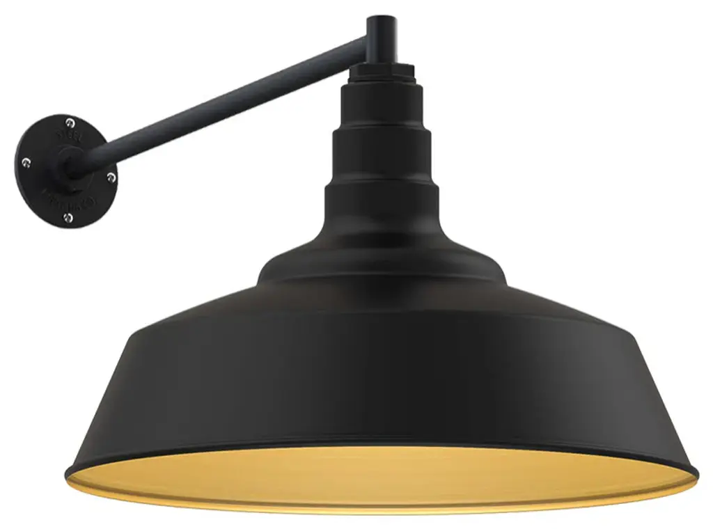 When you"™re crafting a space to bring your story to light, this large barn light fixture can stand out on its own, or confidently pull everything together in style. As with every light we craft, The Redondo is handmade from heavy duty steel, then powder coated for the high quality, long lasting finish we all know and love. Creating a space full of quality and character is easy with help from The Redondo, which does best when used outdoors, and looks great on large exterior walls (like on a garage or oversized building), on barn sides, or perched high among the roof peaks and tall eves of your estate. Want to install it indoors? Be our very bold guest! Our lights are all approved for indoor and outdoor use, no matter how big or how small.