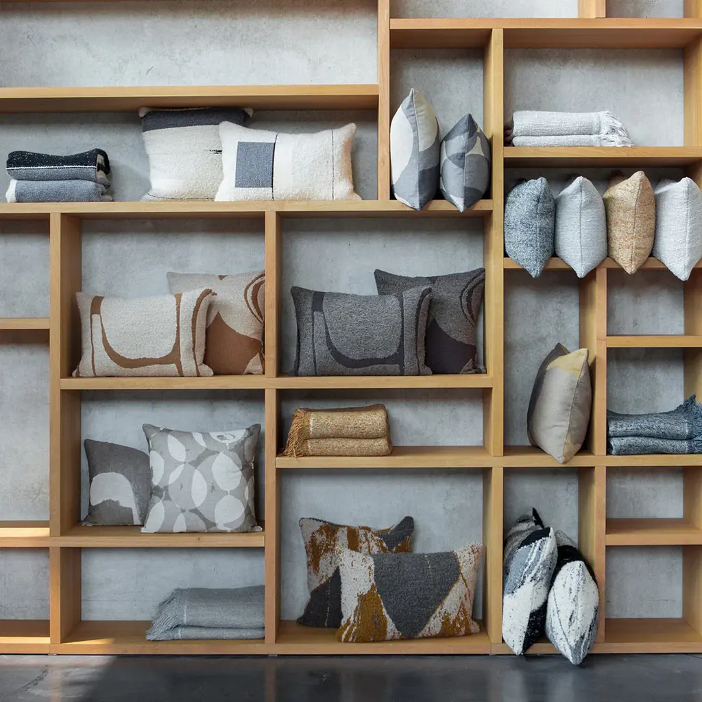 Manufactured in a Belgian family-owned weaving mill, this collection named “Refined Layers" consists of cushions and throws featuring abstract patterns for an understated and original look. They are manufactured from Jacquard fabrics woven mainly from cotton, linen and wool, which blend together to create a play on textures and assorted shaded tones. Mix and match freely with this plush and cozy collection.
