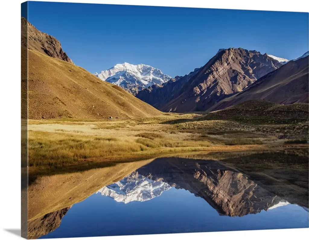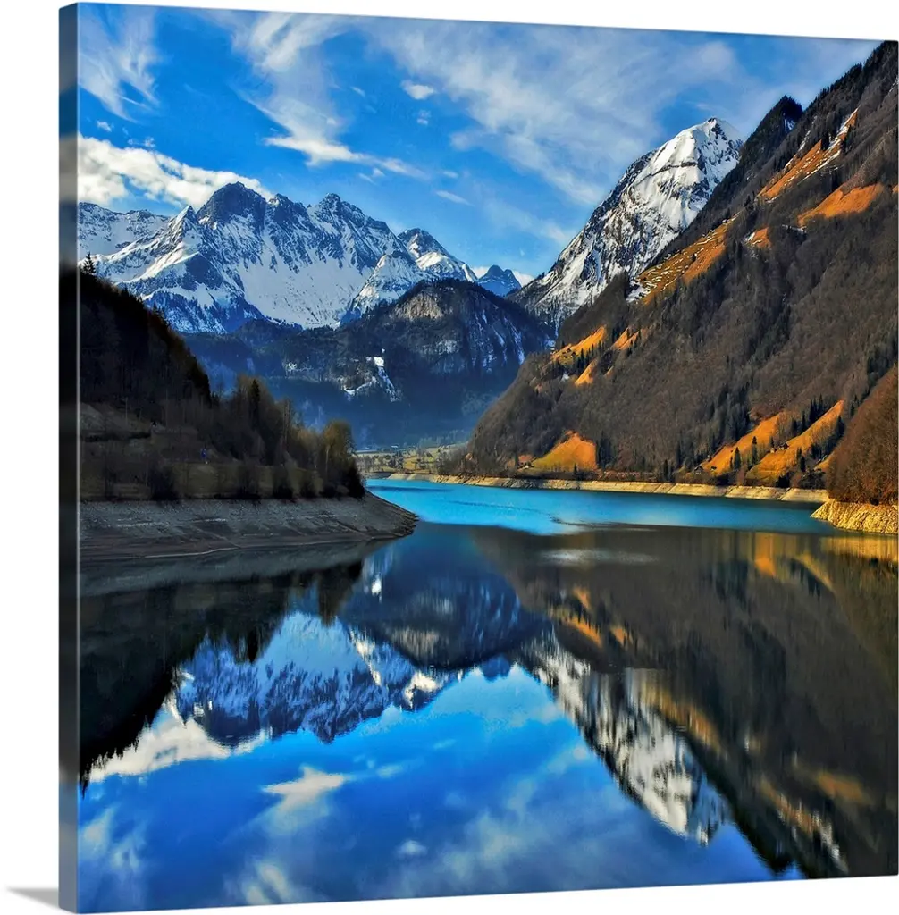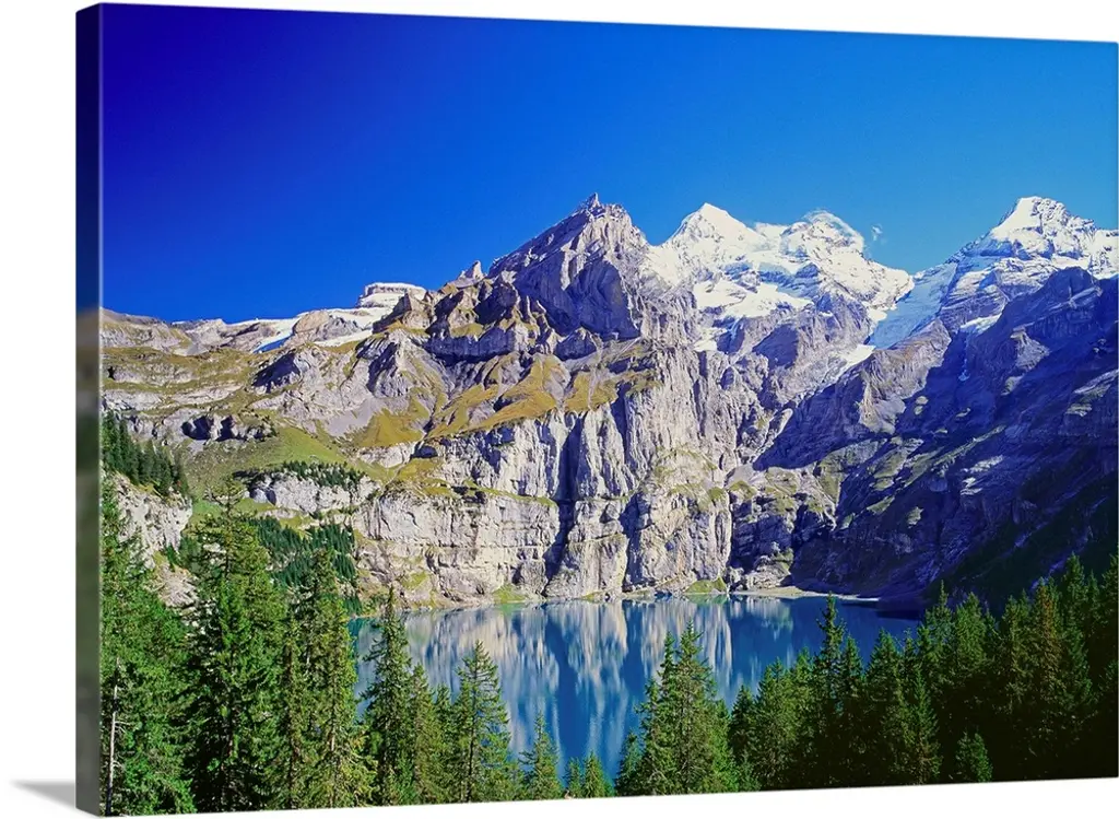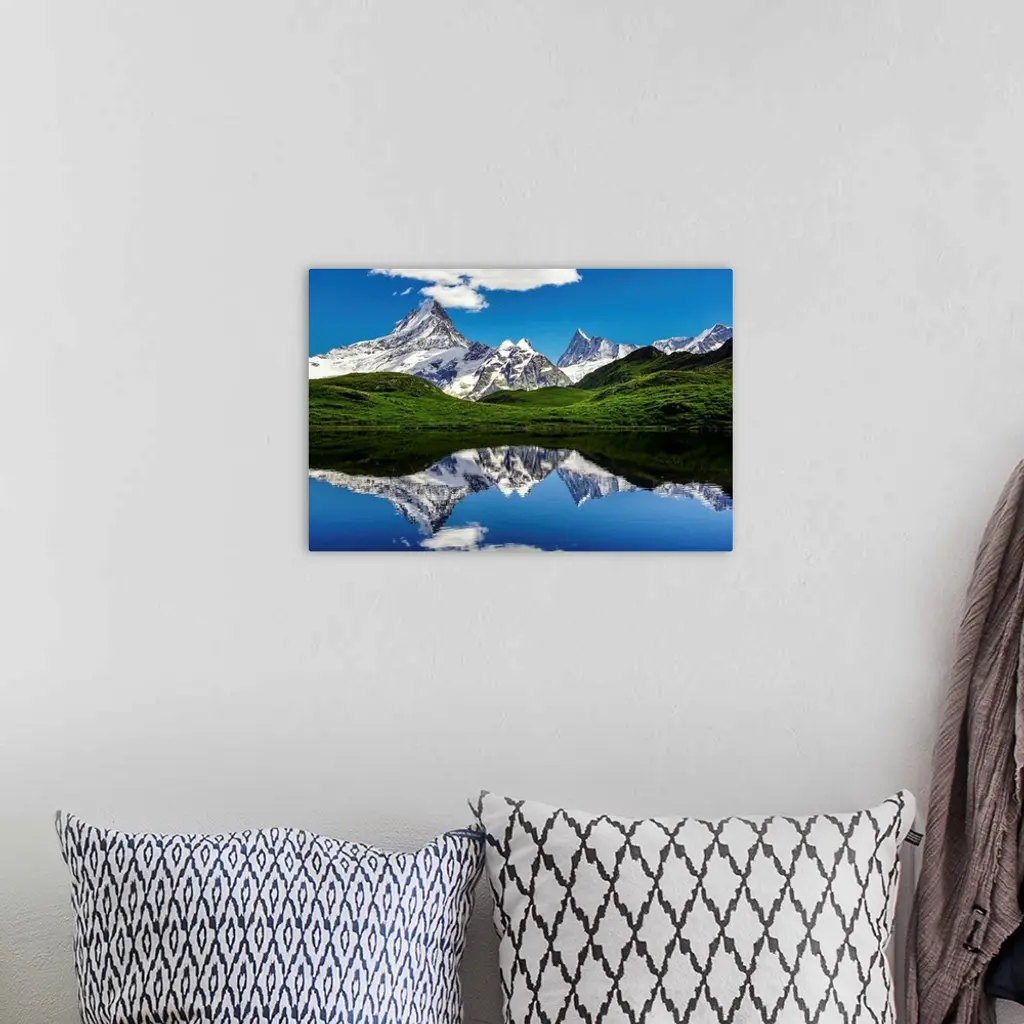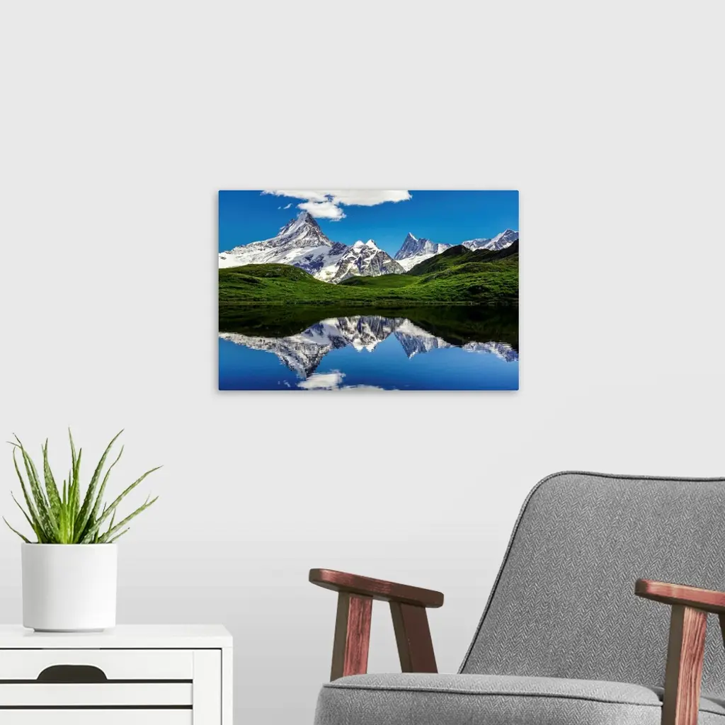 Mountains of the Swiss Alps reflected in the lake Bachalpsee.