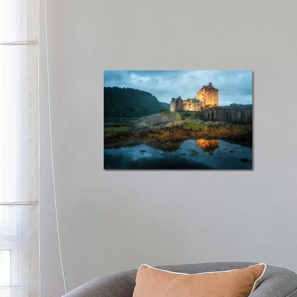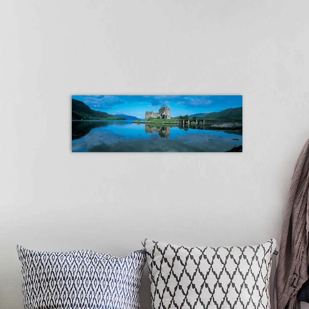 Reflection of a castle in water, Eilean Donan Castle, Loch Duich, Highlands, Scotland wall art for home and office decor. Discover canvas art prints, photos, mural, big canvas art and framed wall art in GreatBigCanvas.com's varied collections.