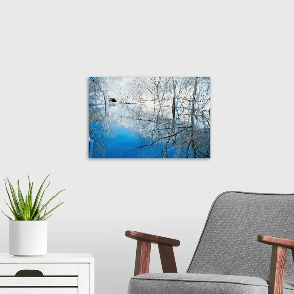 Reflection of bare trees in a lake, Minneapolis, Minnesota, USA