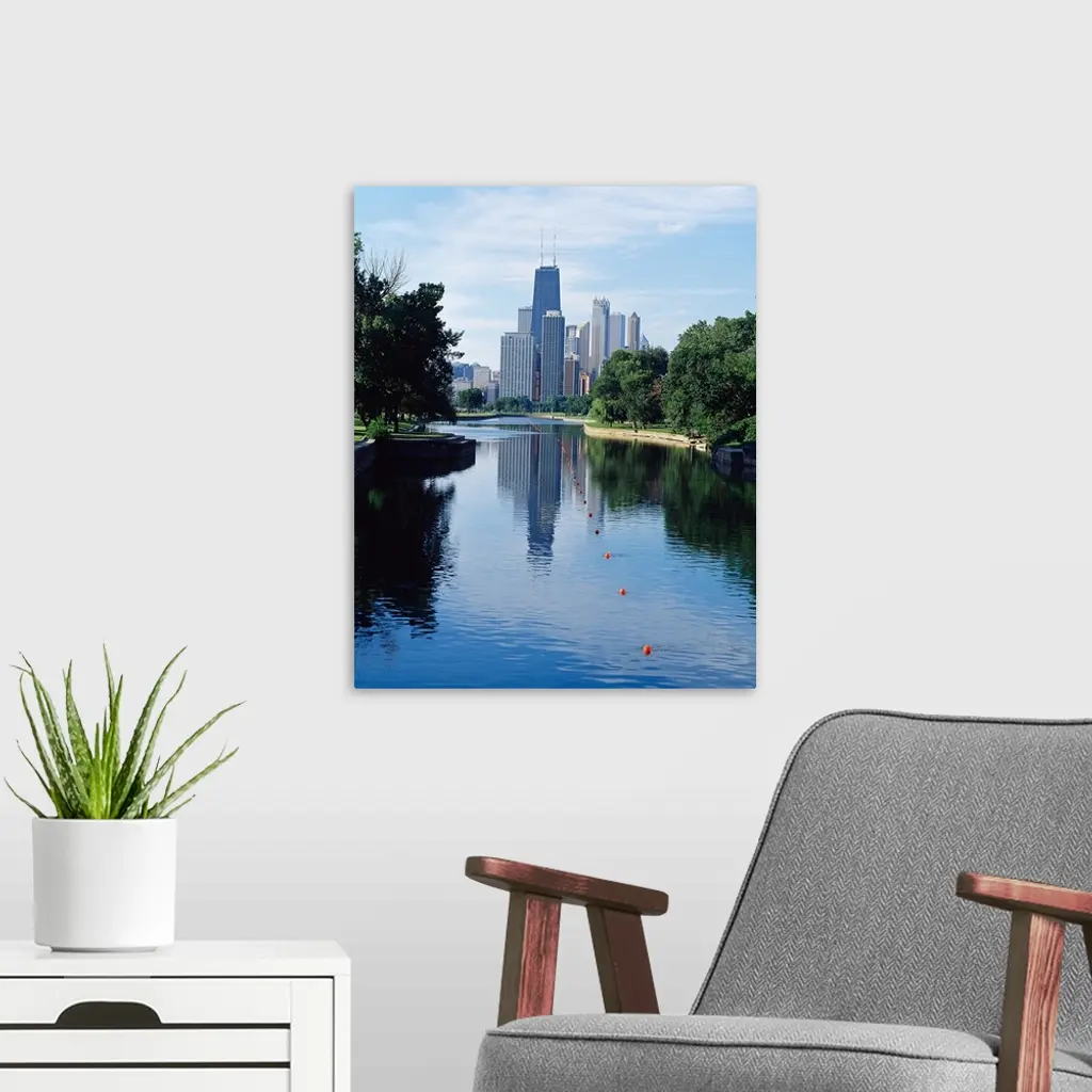 Reflection Of Buildings In A Lagoon, Lincoln Park Lagoon, Lincoln Park, Chicago, Cook County, Illinois,