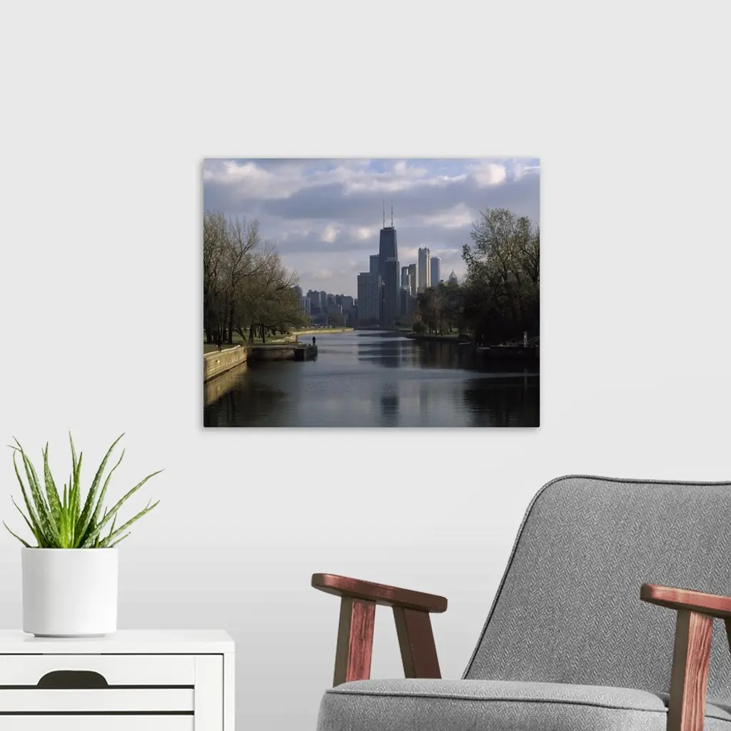 Reflection Of Buildings In A Lagoon, Lincoln Park Lagoon, Lincoln Park, Chicago, Cook County, Illinois,