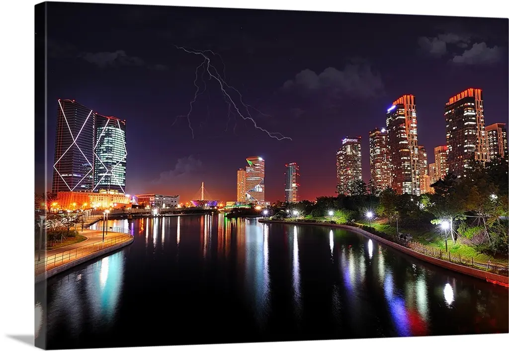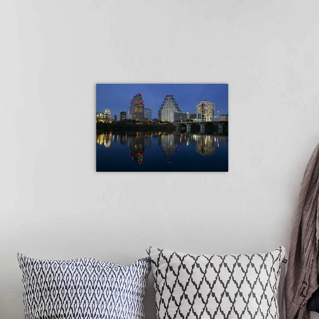 Reflection of buildings in water, Town Lake, Austin, Texas wall art for home and office decor. Discover canvas art prints, photos, mural, big canvas art and framed wall art in GreatBigCanvas.com's varied collections.