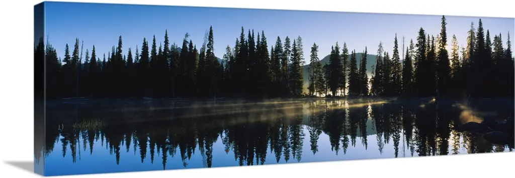 Reflection of clouds and trees in water, Little Bitterroot Lake, Montana wall art for home and office decor. Discover canvas art prints, photos, mural, big canvas art and framed wall art in GreatBigCanvas.com's varied collections.