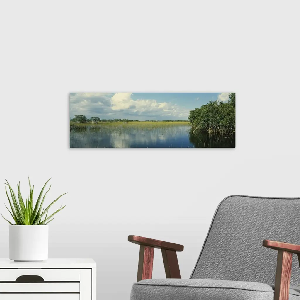 Reflection of clouds in water, Everglades National Park, Florida wall art for home and office decor. Discover canvas art prints, photos, mural, big canvas art and framed wall art in GreatBigCanvas.com's varied collections.