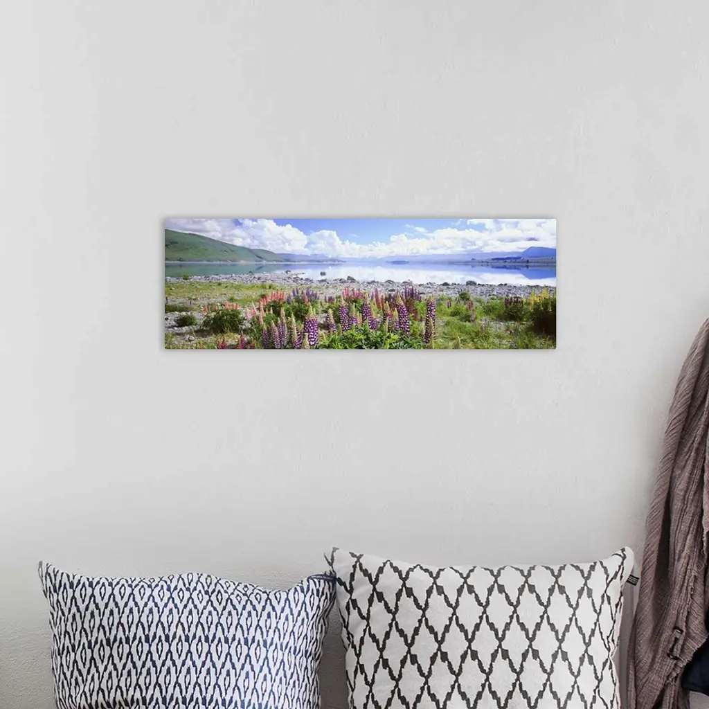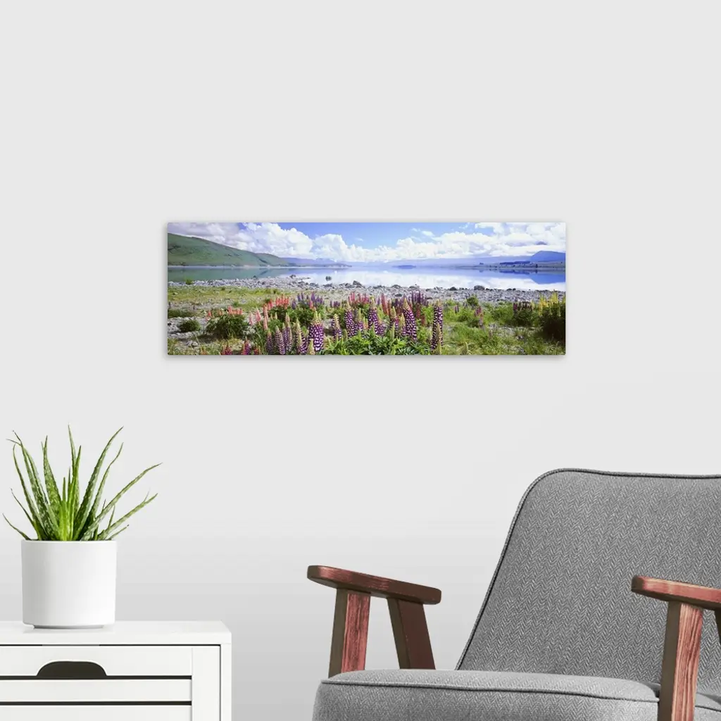 Reflection of clouds on a lake, Mackenzie Country, South Island, New Zealand wall art for home and office decor. Discover canvas art prints, photos, mural, big canvas art and framed wall art in GreatBigCanvas.com's varied collections.