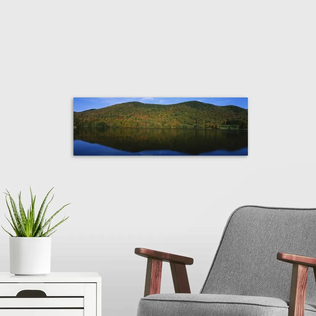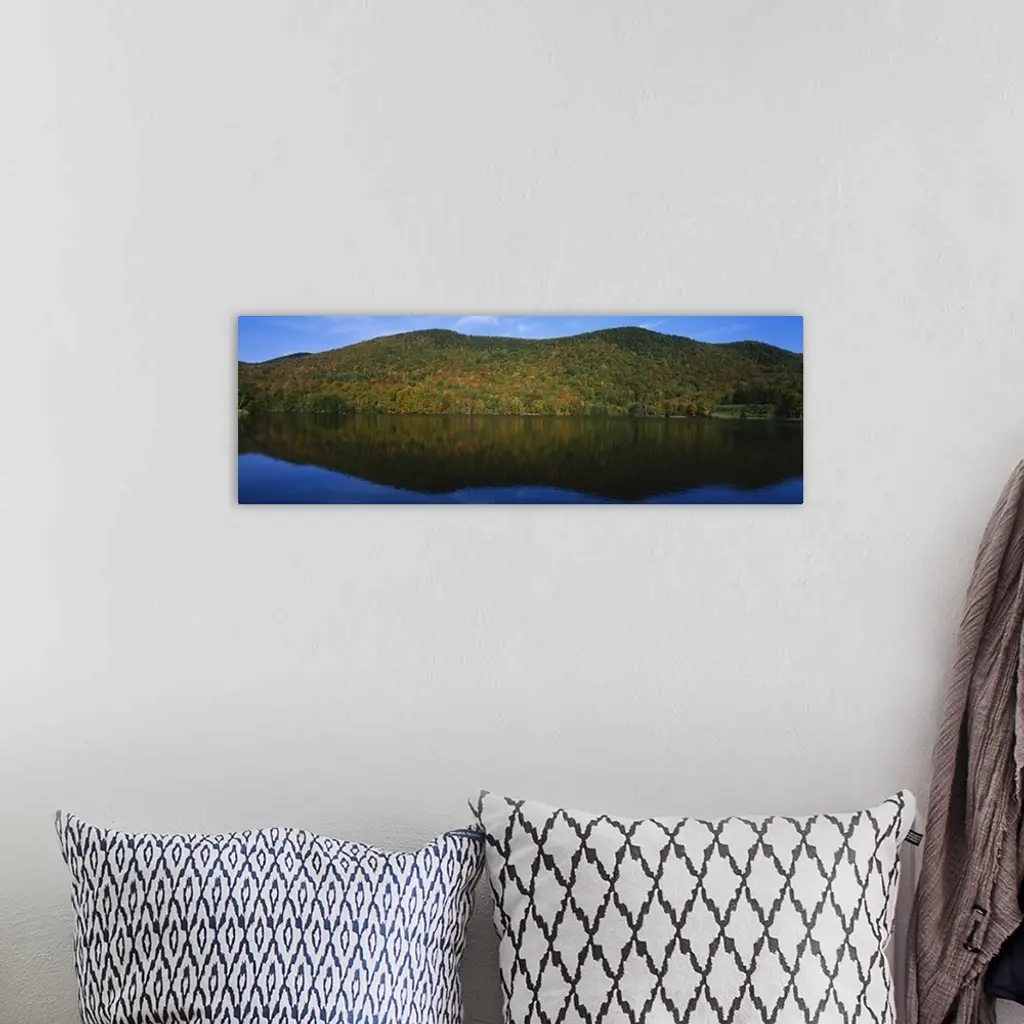 Reflection of hills in a lake, Echo Lake, Northeast Kingdom, Vermont wall art for home and office decor. Discover canvas art prints, photos, mural, big canvas art and framed wall art in GreatBigCanvas.com's varied collections.