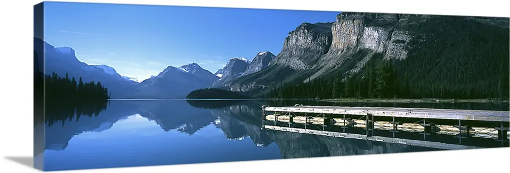 Reflection of mountain on water, Emerald Lake, Yoho National Park, British Columbia, Canada.