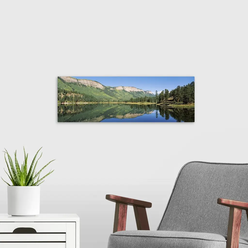 Reflection of mountains in a lake, Haviland Lake, Hermosa Cliffs, Colorado, USA