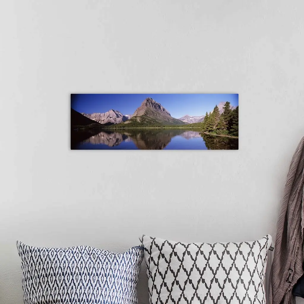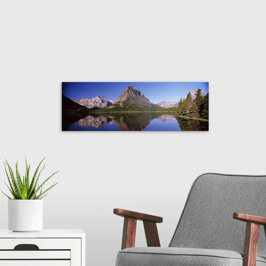 Reflection of mountains in a lake, Swiftcurrent Lake, Many Glacier, US Glacier National Park, Montana, wall art for home and office decor. Discover canvas art prints, photos, mural, big canvas art and framed wall art in GreatBigCanvas.com's varied collections.
