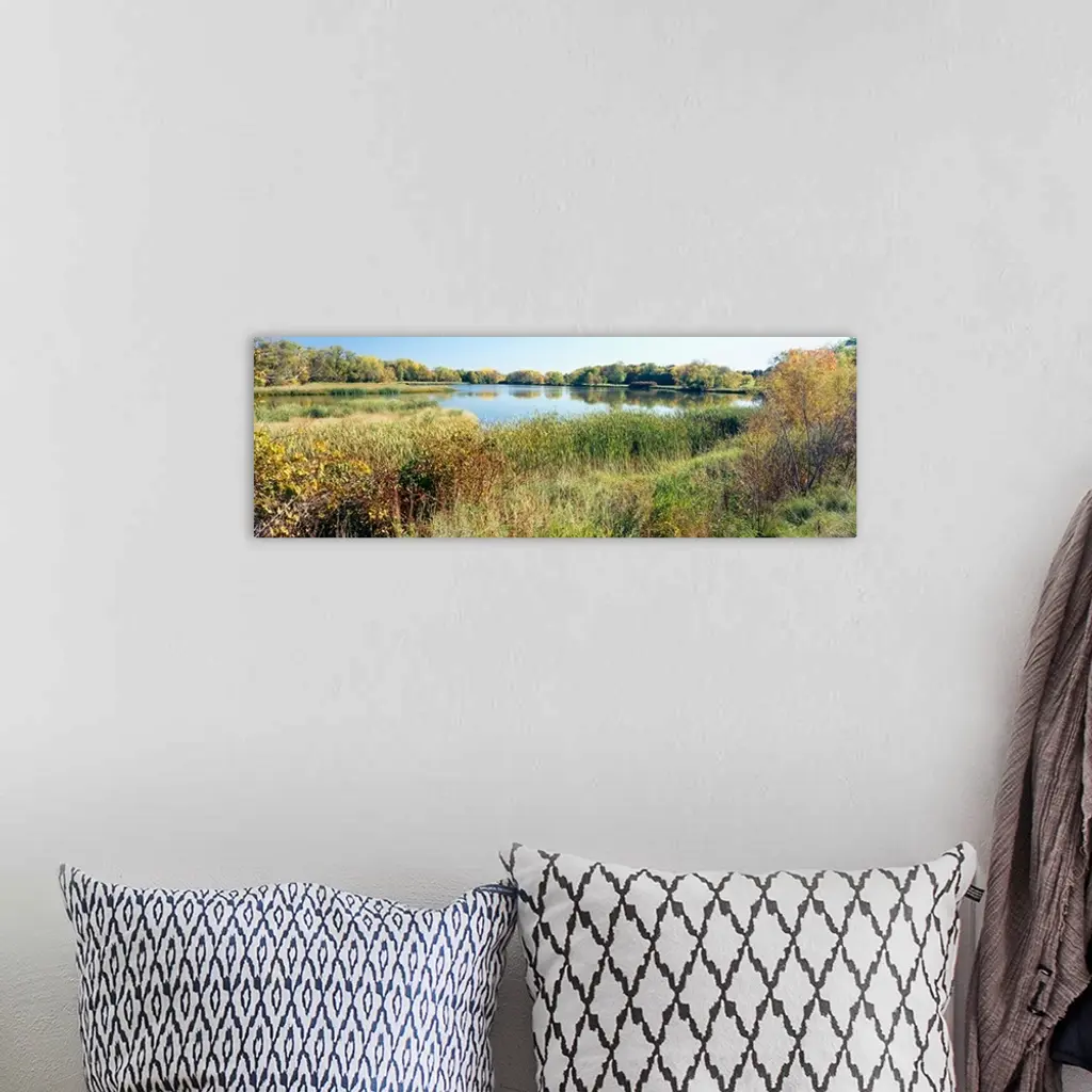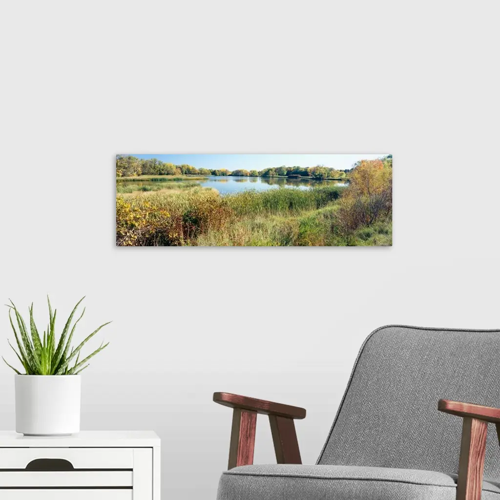 Reflection of trees in water, Odana Hills Golf Course, Madison, Dane County, Wisconsin wall art for home and office decor. Discover canvas art prints, photos, mural, big canvas art and framed wall art in GreatBigCanvas.com's varied collections.