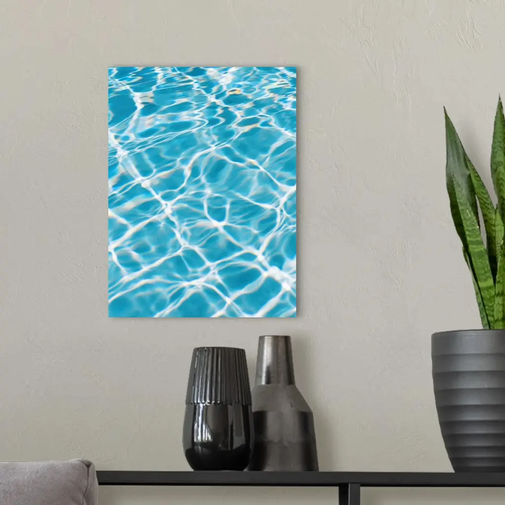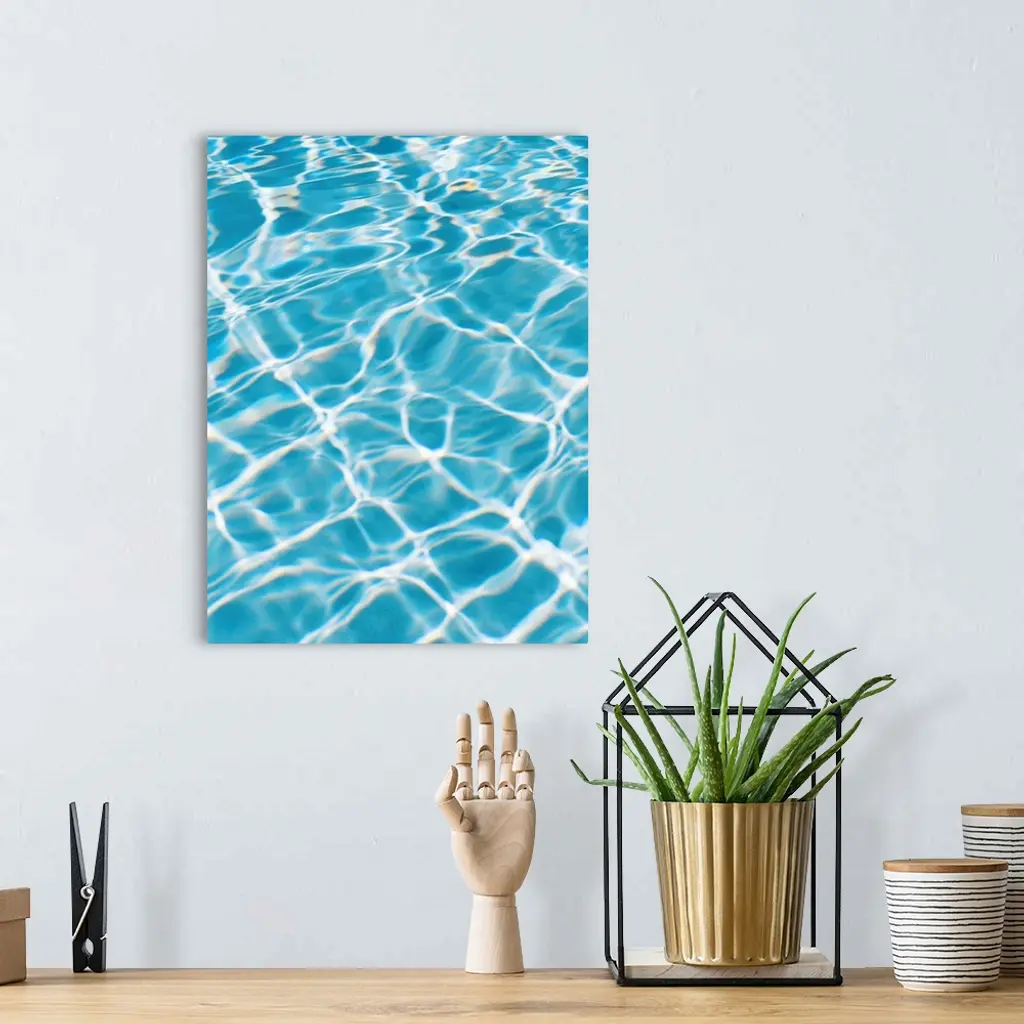 An abstracted photograph of sunlight reflecting off of clear pool water.