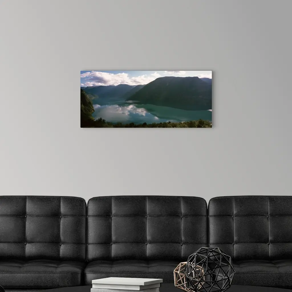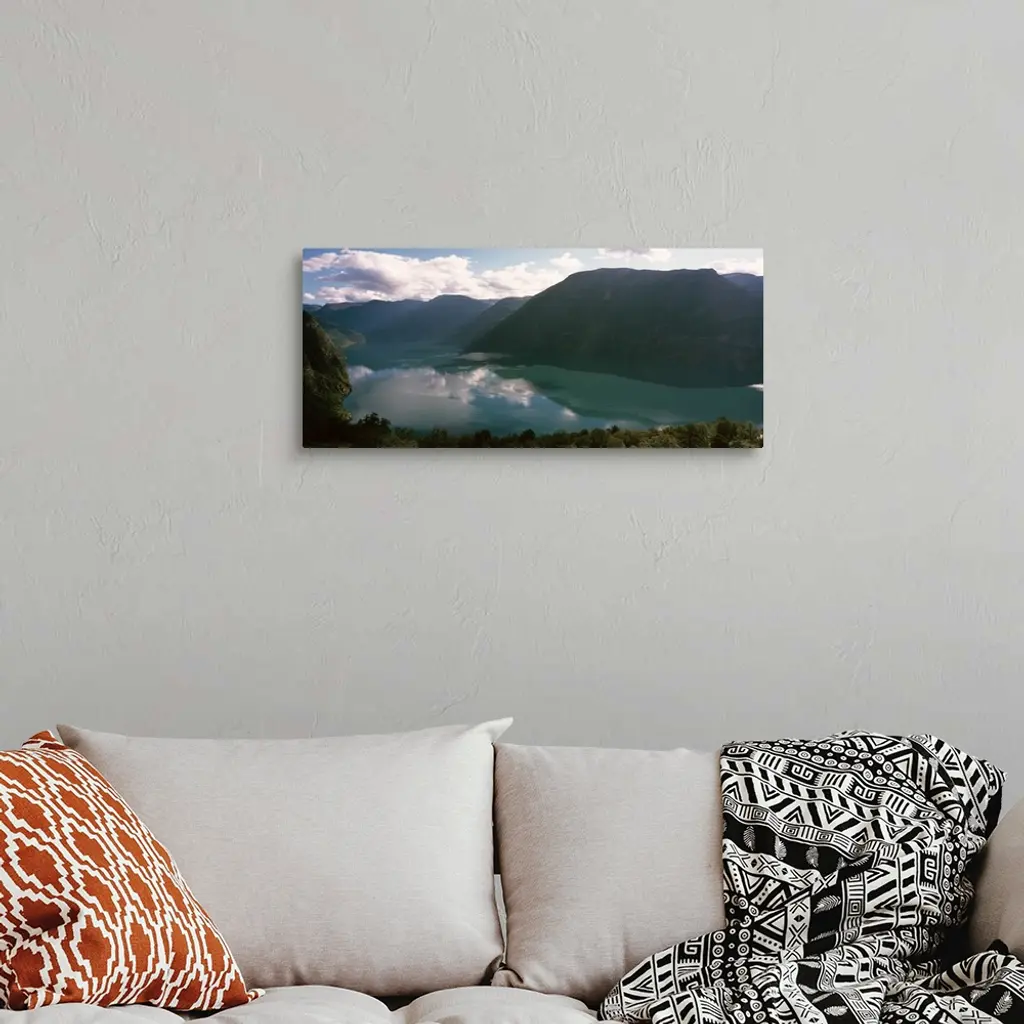 Reflections of clouds and mountains in a lake, Geirangerfjord, More og Romsdal, Norway wall art for home and office decor. Discover canvas art prints, photos, mural, big canvas art and framed wall art in GreatBigCanvas.com's varied collections.