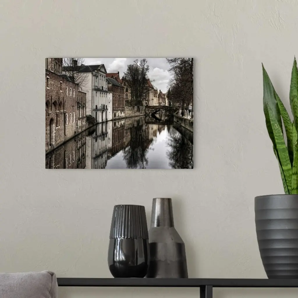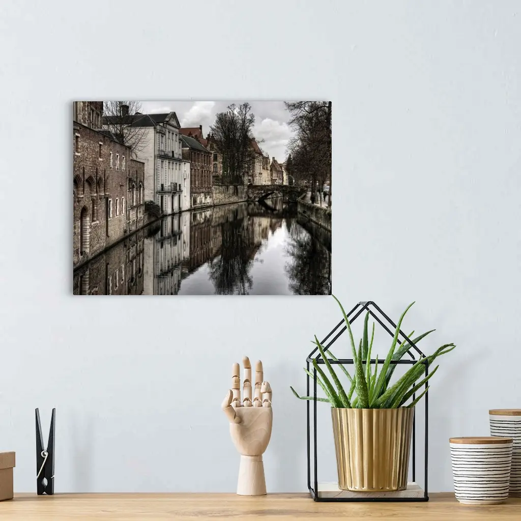 Canal in the city of Bruges, Belgium, on a cloudy day in the winter.